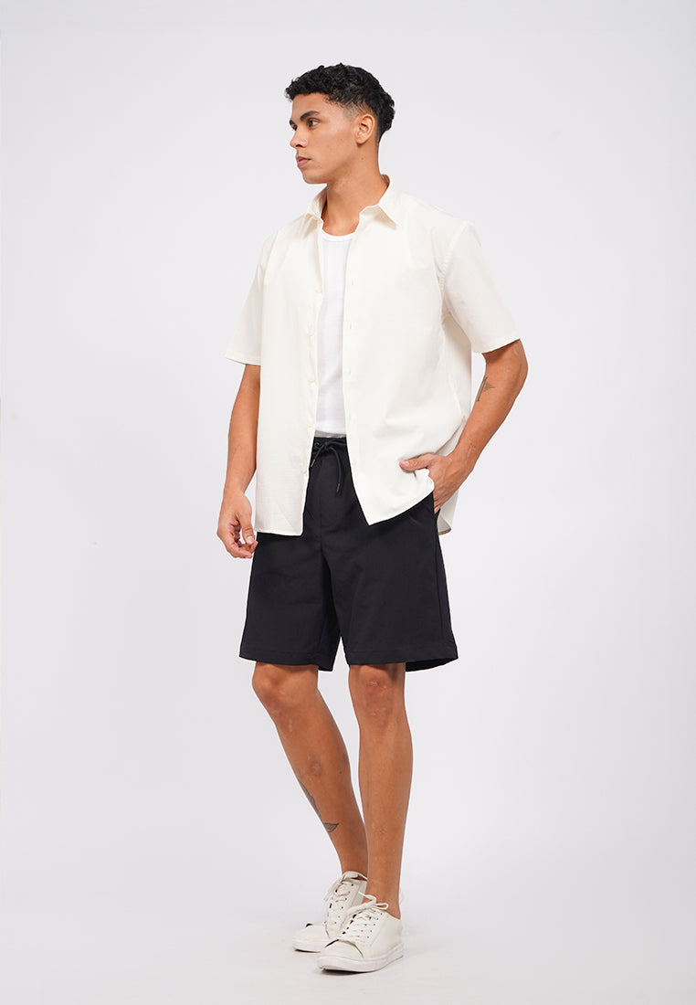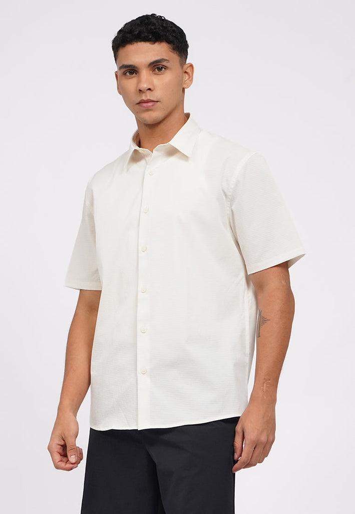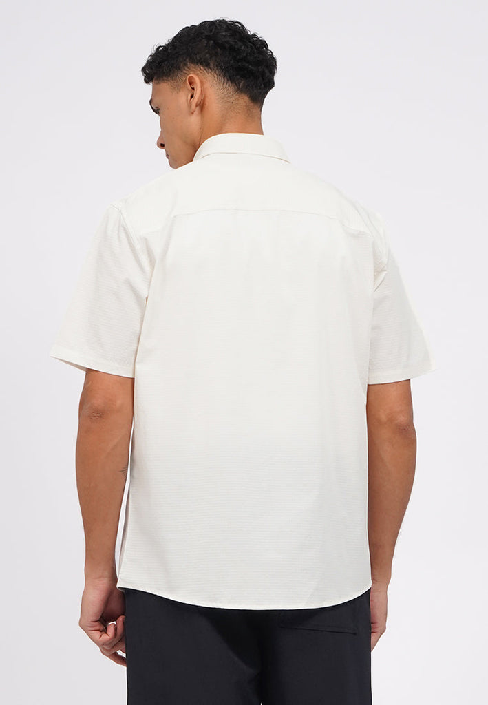 Kemeja lengan pendek, Front button opening, Textured breathable fabric, Material: Polyester Mesh, Fit: Regular, Color: Ecru, Model info: Model Wearing Size 15,5, Height: 182, Chest: 94, Waist: 75, Hips: 96, Art: 1-SSRACT225L115