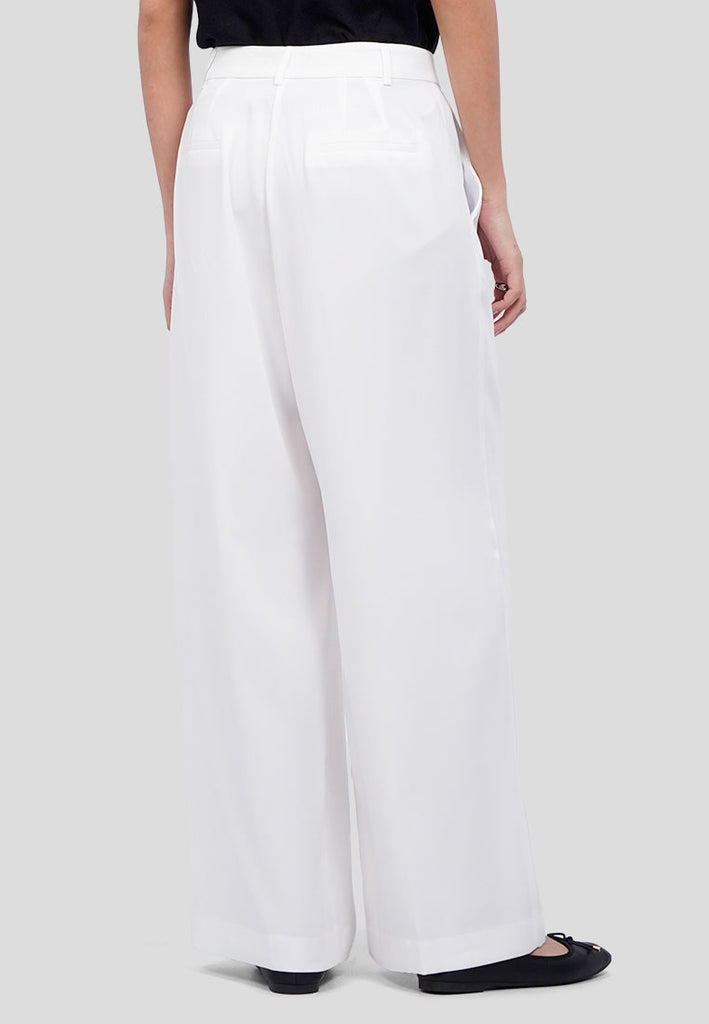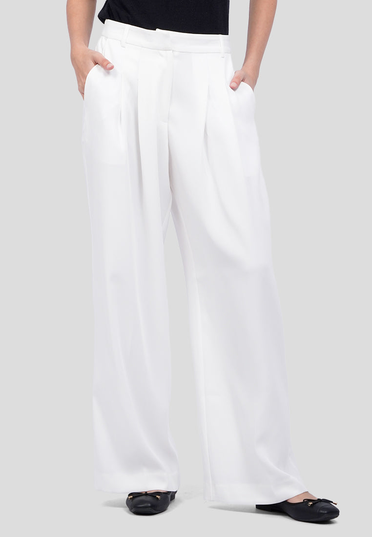 Celana panjang wide leg, Front pleat details, Double side and back pocket, Dilengkapi dengan belt loop, Material: Polyester, Fit: Oversized, Color: Off White, Model info: Model Wearing Size S for Top, Size S for Pants, Model Height 177 cm, Bust: 77 cm, Waist: 60 cm, Hips: 81 cm, Art: 5+LPWKSG225G122