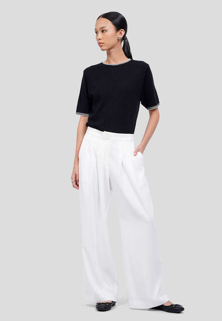 Pleated Wide Leg Solid Pants