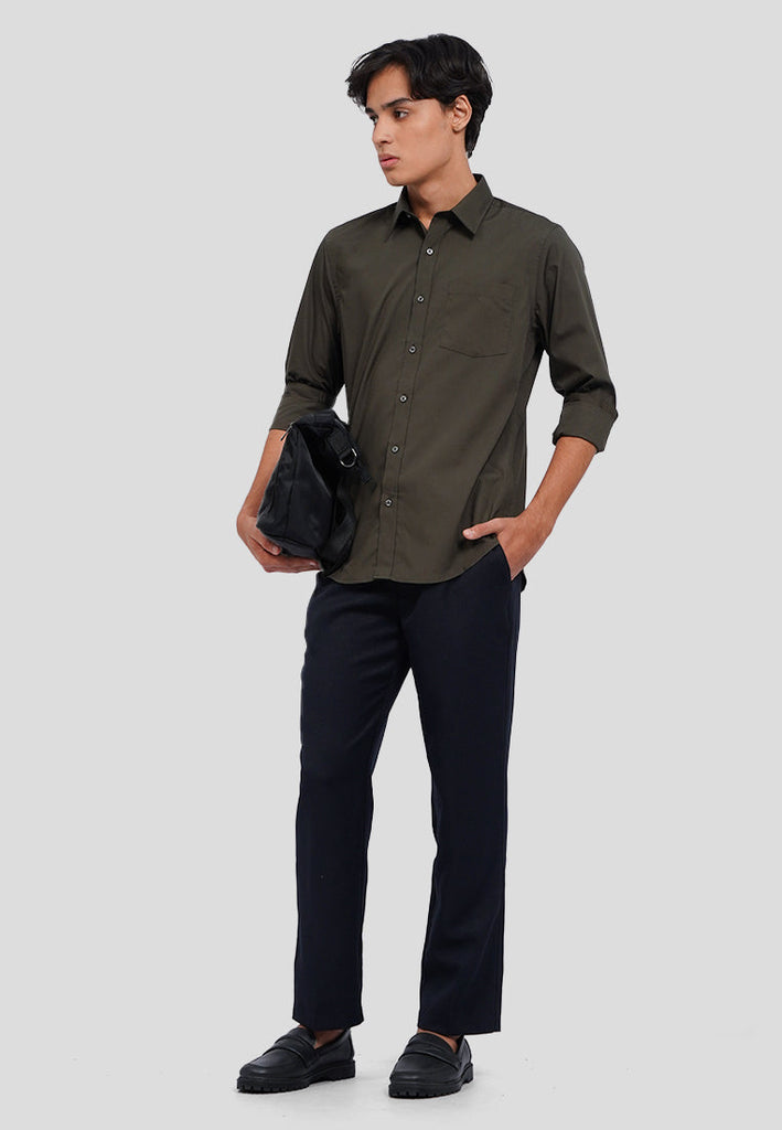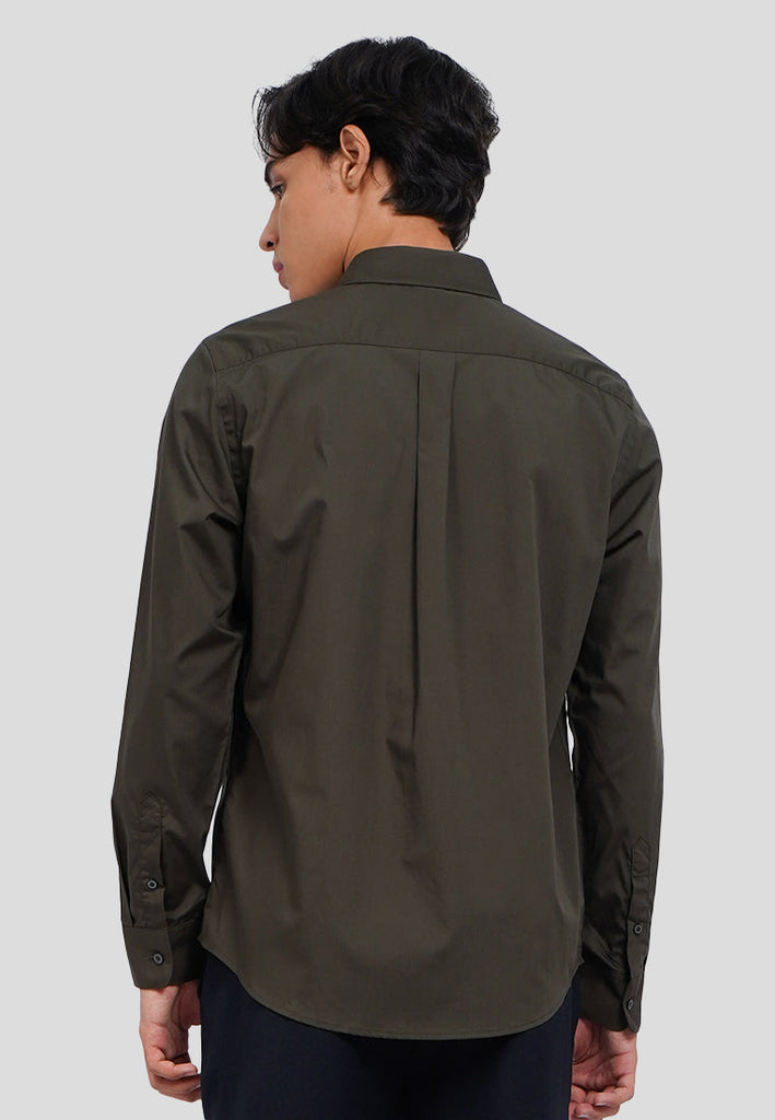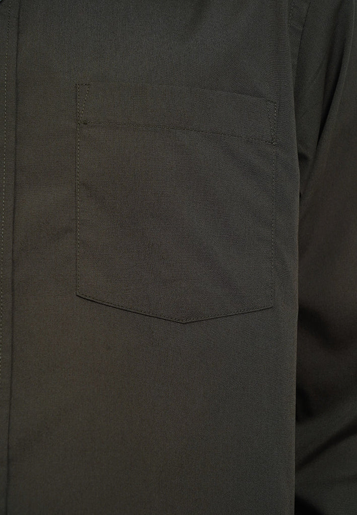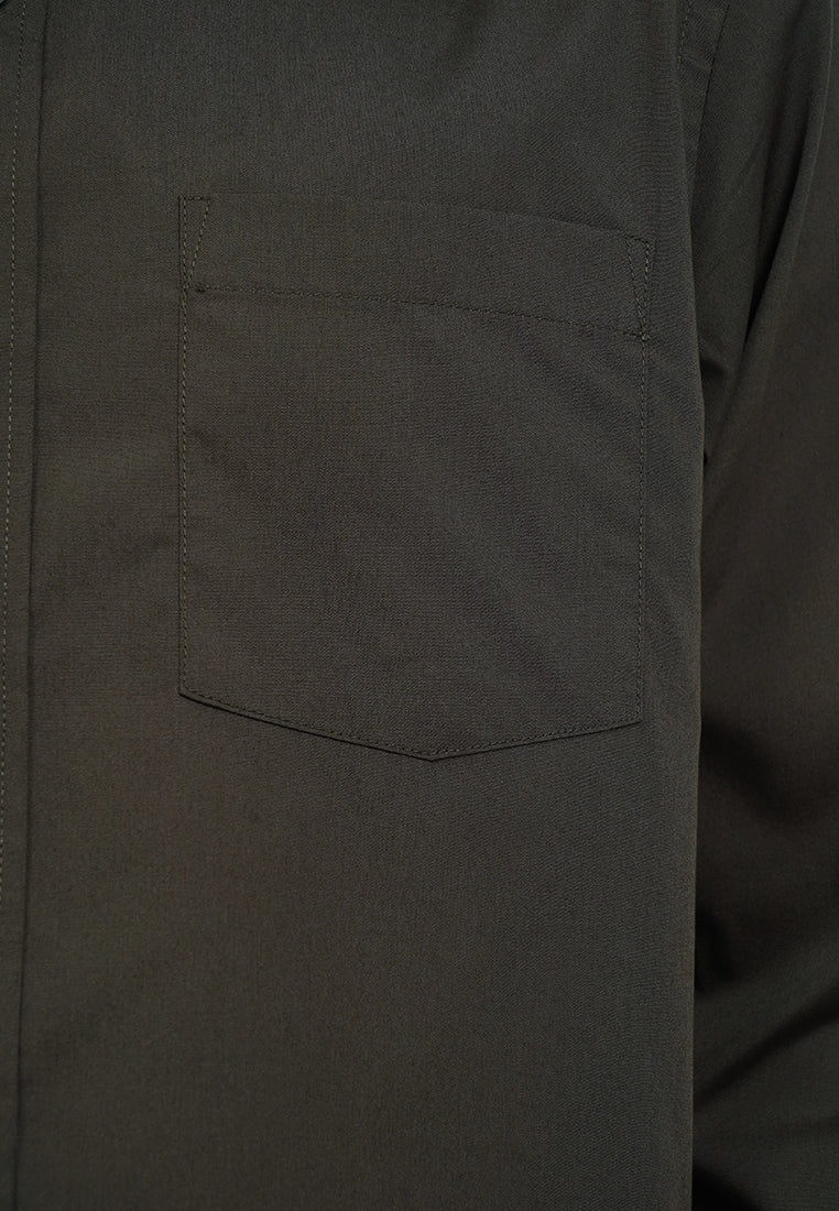 Kemeja lengan panjang, Pointed front pocket, Easy care fabric, Front button opening, Material: CVC, Fit: Regular, Color: Dark Olive, Model info: Model Wearing Size 16, Model Height 185 cm, Bust: 91 cm, Waist: 80, Hips: 93 cm, Art: 1-LSRBSC525O207