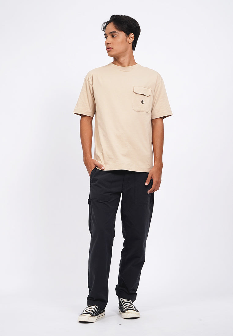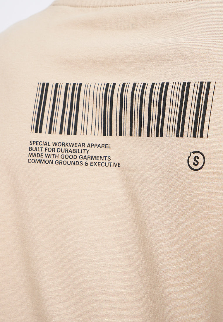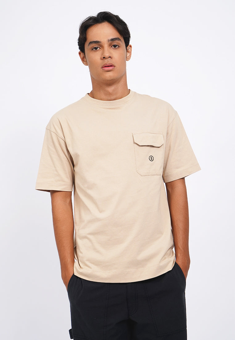 Exclusive collaboration with Common Ground, T-shirt lengan pendek, Round neck, Front flap pocket, Material: Cotton, Fit: Oversized, Color: Beige, Model info: Model Wearing Size M, Model Height 185 cm, Bust: 91 cm, Waist: 80, Hips: 93 cm