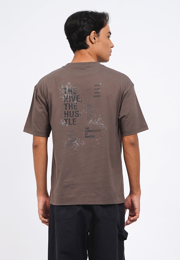 Exclusive collaboration with Common Ground, T-shirt lengan pendek, Round neck, Printed graphic details, Material: Cotton, Fit: Oversized, Color: Sand, Model info: Model Wearing Size M, Model Height 185 cm, Bust: 91 cm, Waist: 80, Hips: 93 cm