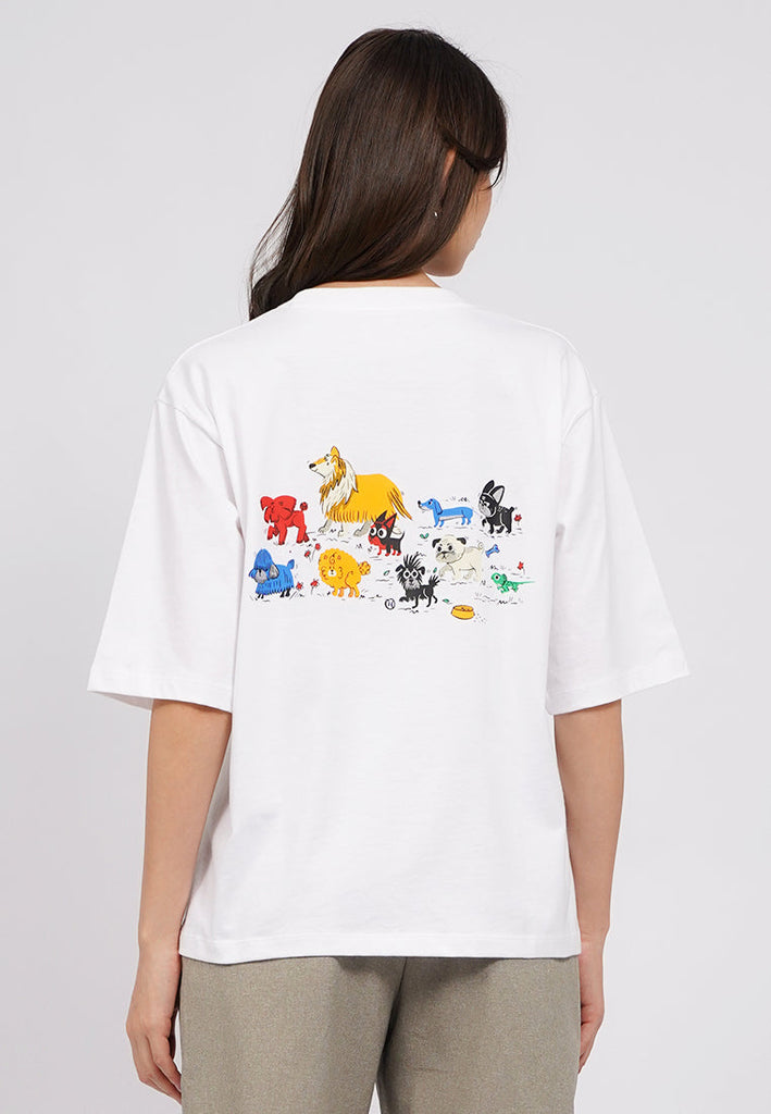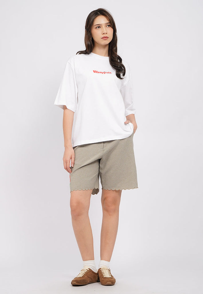 Exclusive collabs with Sanchia, T-shirt lengan pendek, Round neck, Graphics at front and back, Material: Cotton Combed, Fit: Oversized, Color: Off White, Model info: Model Wearing Size S, Height: 175cm, Bust: 89, Waist: 69, Hips: 89, Art: 5-TSKCOL325J169