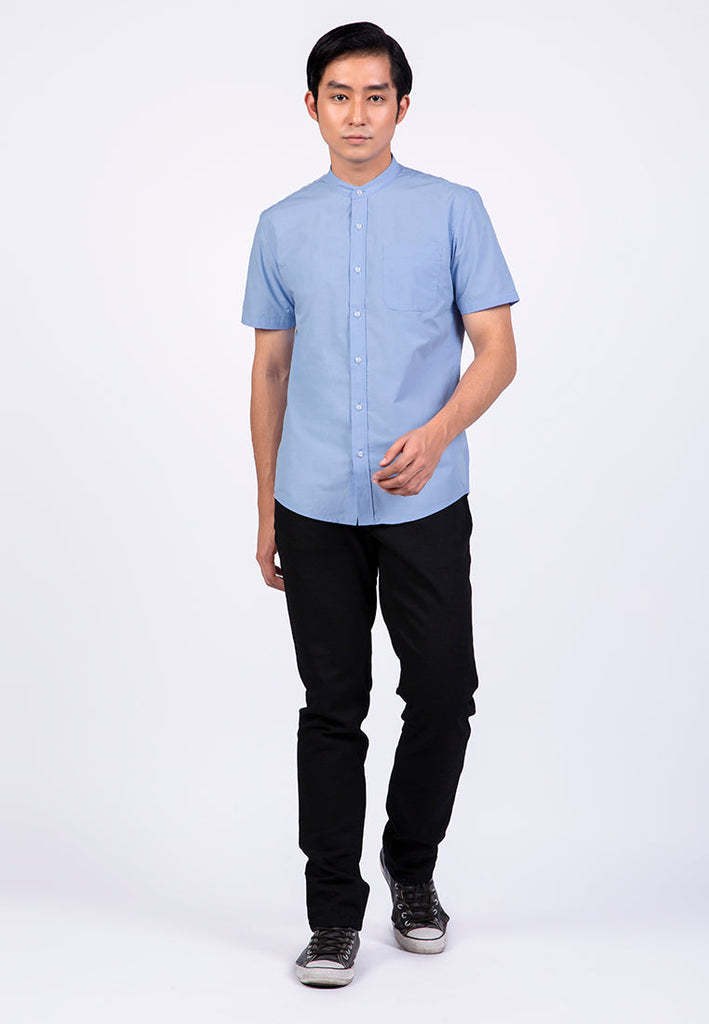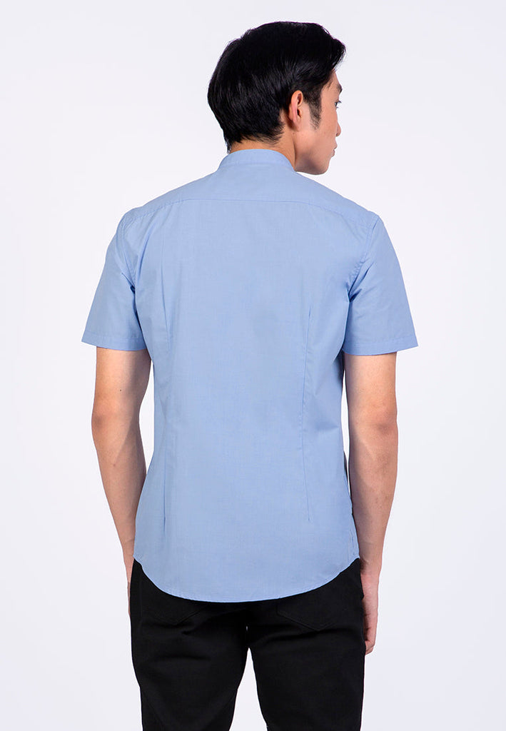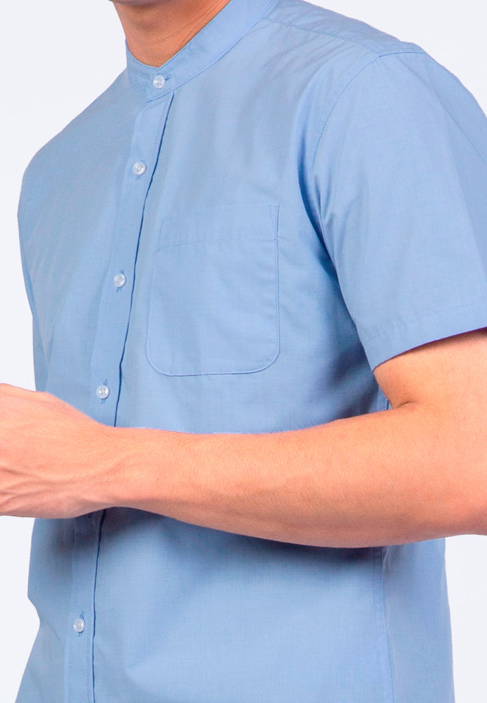 Kemeja koko lengan pendek, Contrast button opening, Rounded front pocket, Material: CVC, FIT: SLIM, Color: Light BLUE, Model info: Model Wearing Size 15.5 for Top, Model Height 183 cm, Bust: 91 cm, Waist: 73 cm, Hips: 84 cm, Art: 1-SSICRO221K484