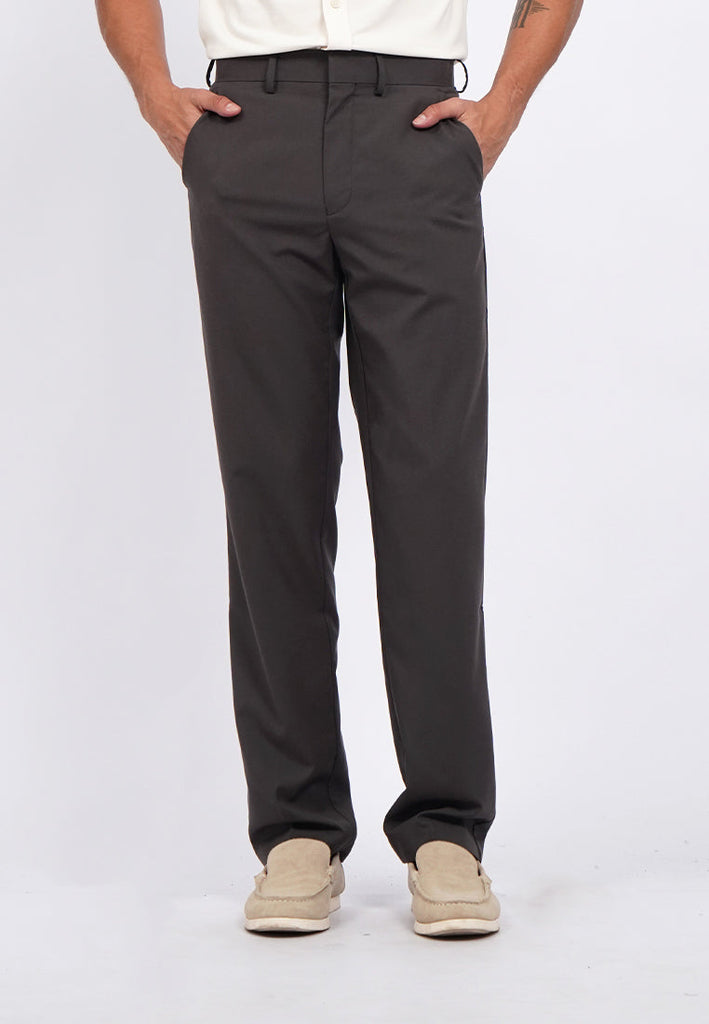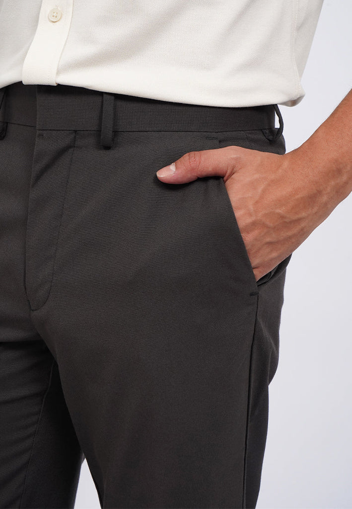 Celana panjang formal, Double buttoned back pocket, 32" inseam, Dilengkapi dengan belt loop, Material: Poly Viscose, Fit: Regular, Color: Dark Grey, Model info: Model Wearing Size 31, Height: 182 cm, Chest: 94 cm, Waist: 75 cm, Hips: 96 cm
