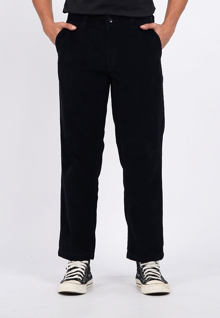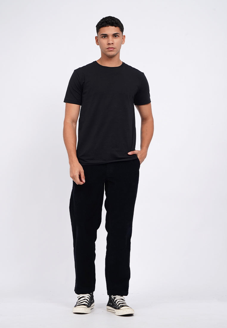 Celana panjang regular fit, Double buttoned back pocket, Textured fabric, Dilengkapi belt loop, Material: Cotton, Fit: Regular, Color: Black, Model info: Model Wearing Size 31, Height: 182 cm, Chest: 94 cm, Waist: 75 cm, Hips: 96 cm