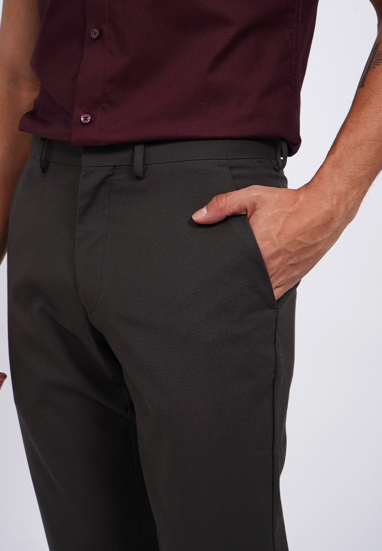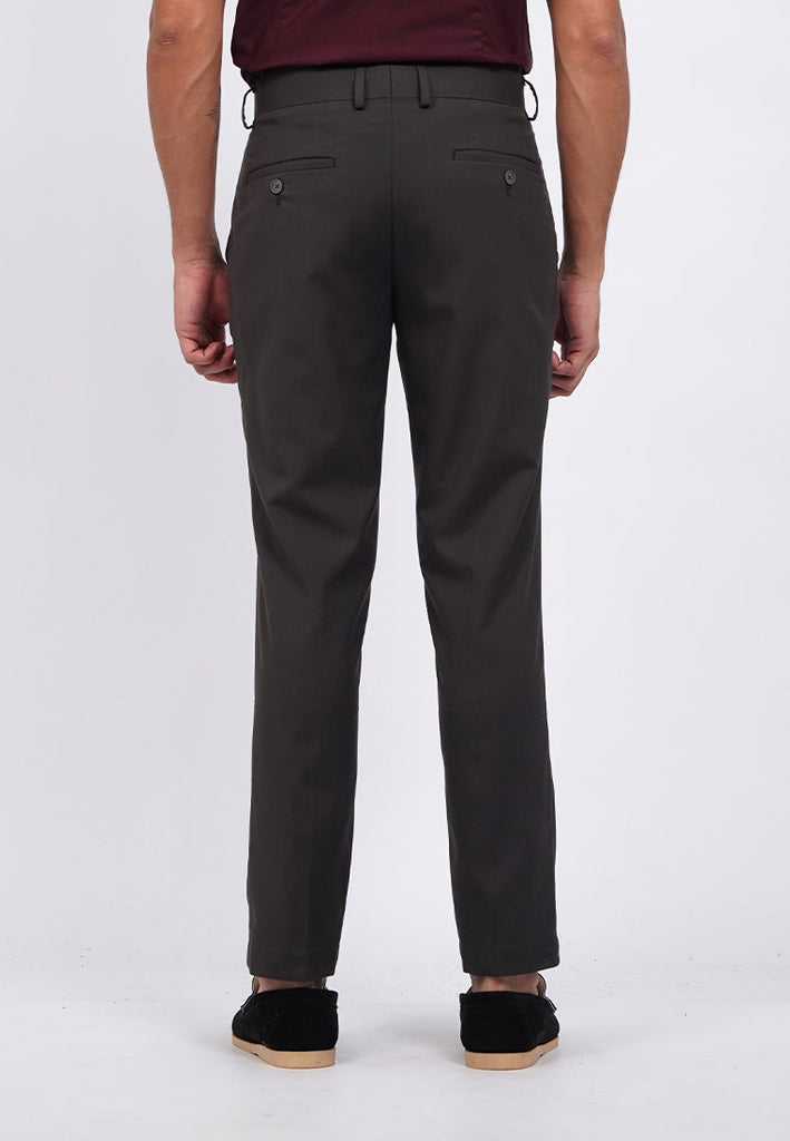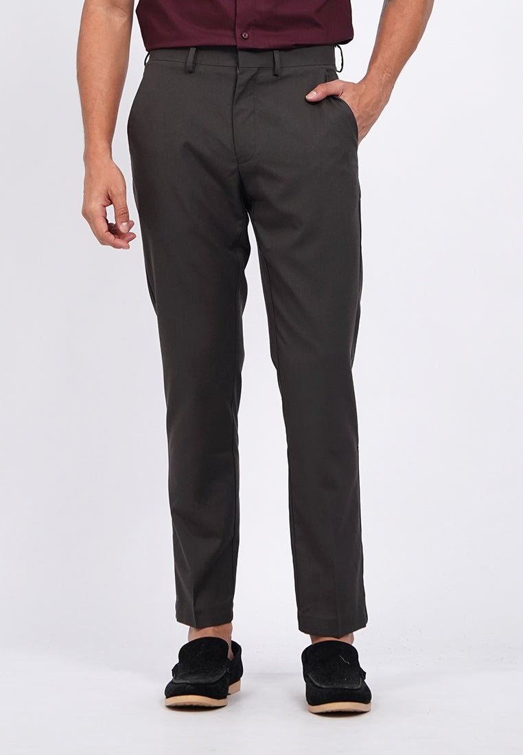 Celana panjang formal, Double buttoned back pocket, 32" inseam, Dilengkapi dengan belt loop, Material: Poly Viscose, Fit: Slim, Color: Dark Grey, Model info: Model Wearing Size 31, Height: 182 cm, Chest: 94 cm, Waist: 75 cm, Hips: 96 cm