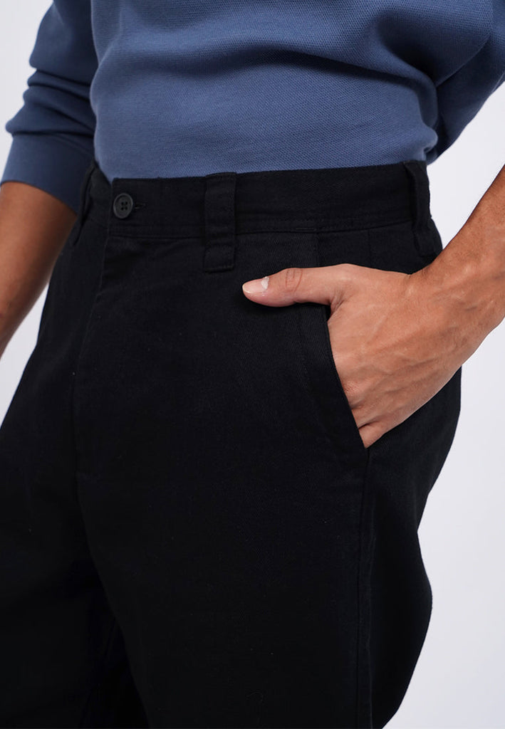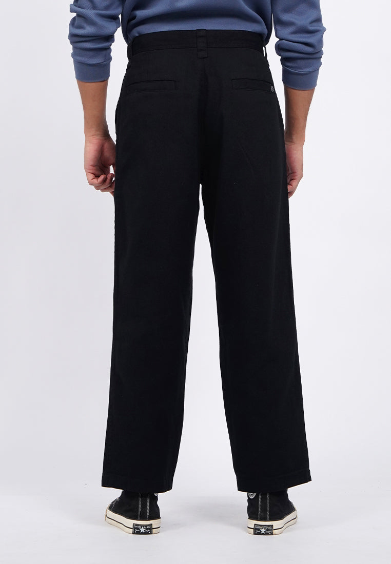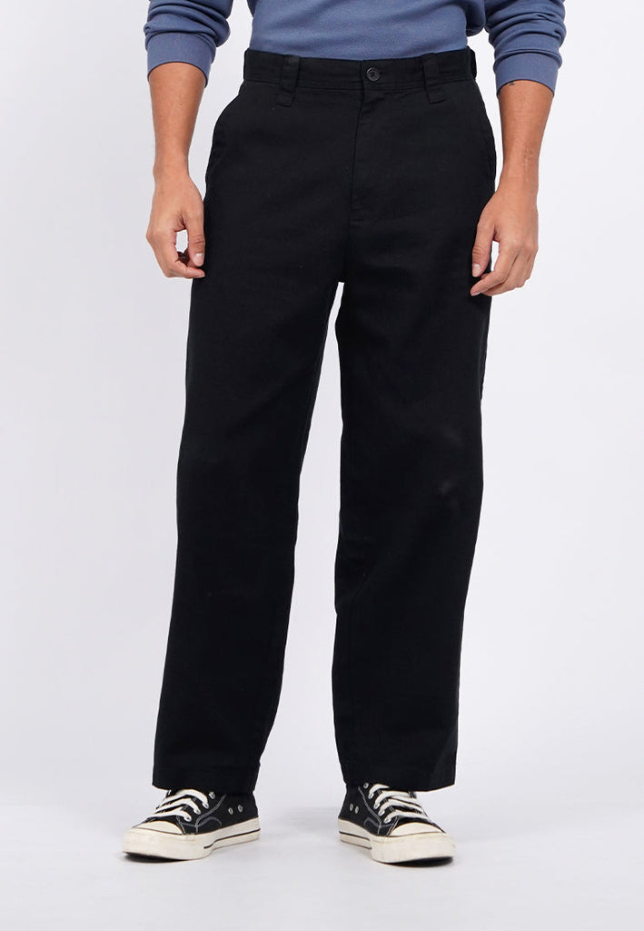 Celana panjang chinos, Wide fit, Double back pocket with logo details, Dilengkapi belt loop, Material: Cotton Twill, Fit: Straight Wide, Color: Black, Model info: Model Wearing Size 31, Height: 182 cm, Chest: 94 cm, Waist: 75 cm, Hips: 96 cm