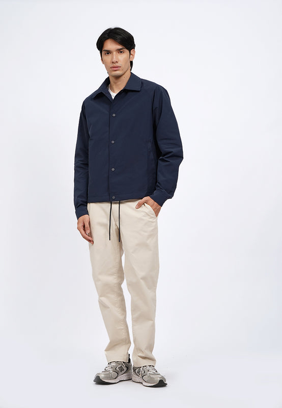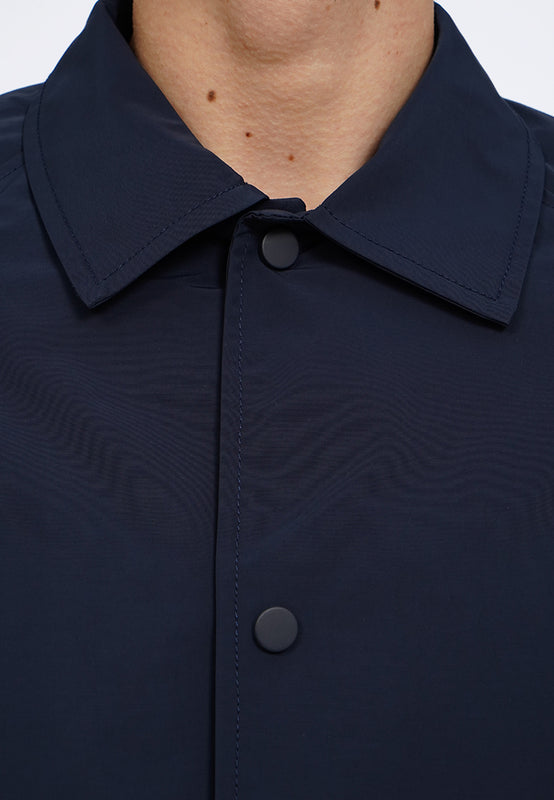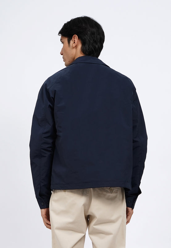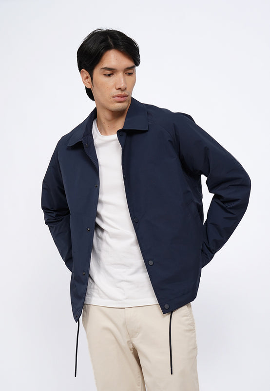 Jaket lengan panjang, Shirt collar, Adjustable hem with drawstring, Side pocket details, Material: Polyester, Fit: Regular, Color: Navy, Model info: Model Wearing Size M, Height 183.5cm, Bust: 86 cm, Waist: 72, Hips: 82 cm