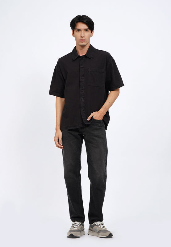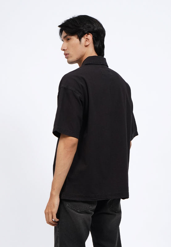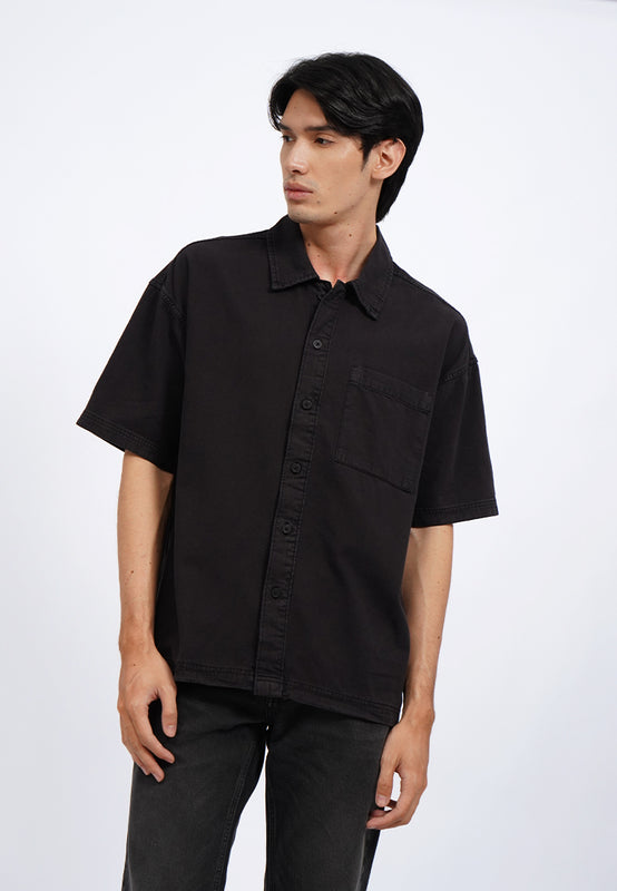 Kemeja lengan pendek overdyed dengan fitting oversize, dengan washing black . Berbahan 100% cotton yang adem dan nyaman dipakai. Dilengkapi dengan dua kantong pada bagian chest- kanan dan kiri pakai. Bukaan menggunakan button pada bagian depan, Material: 0, Fit: Oversized, Color: Dark Grey, Model info: Model Wearing Size M, Height 183.5cm, Bust: 86 cm, Waist: 72, Hips: 82 cm