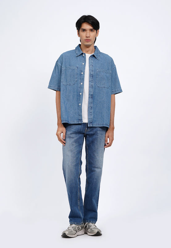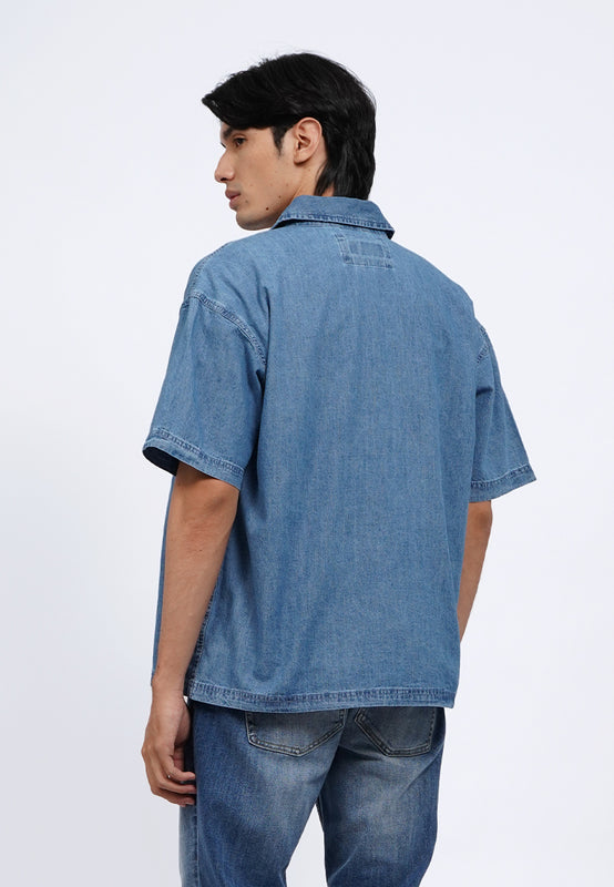 Oversized Short Sleeve Denim Shirt