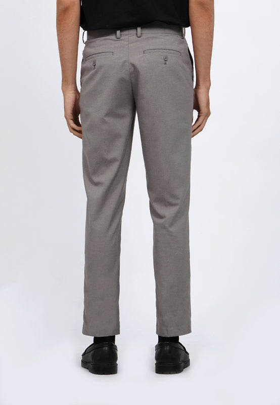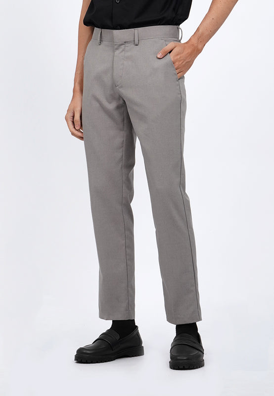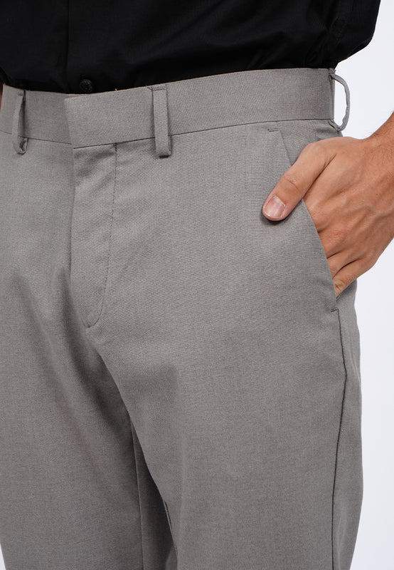 Celana panjang formal, Dilengkapi belt loop, Double back buttoned pocket, Material: Polyester, Fit: Slim, Color: Lt. Grey, Model info: Model Wearing Size 31_31, Height 183.5cm, Bust: 86 cm, Waist: 72, Hips: 82 cm