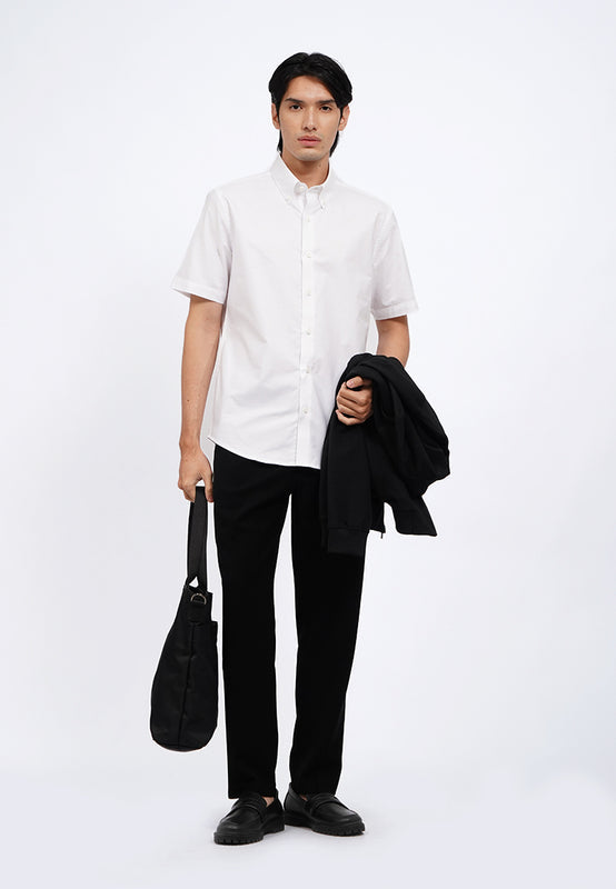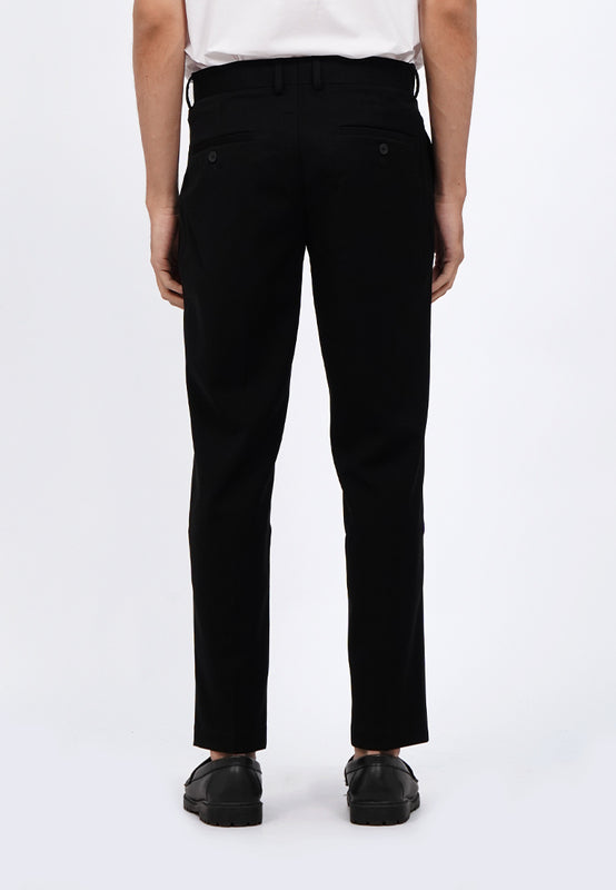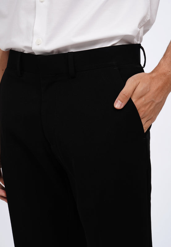 Celana panjang formal, Dilengkapi belt loop, Double back buttoned pocket, Material: Polyester, Fit: Slim, Color: Jet Black, Model info: Model Wearing Size 31_31, Height 183.5cm, Bust: 86 cm, Waist: 72, Hips: 82 cm