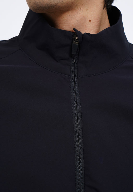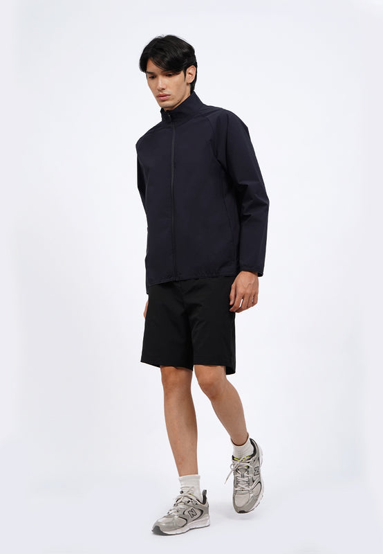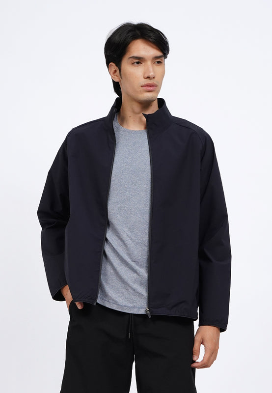 Long sleeve active jacket, Raglan sleeves, High neck, Front zipper opening, Light weight fabric, Material: Polyester, Fit: Slim, Color: Navy, Model info: Model Wearing Size M, Height 183.5cm, Bust: 86 cm, Waist: 72, Hips: 82 cm
