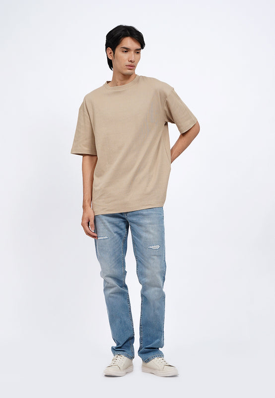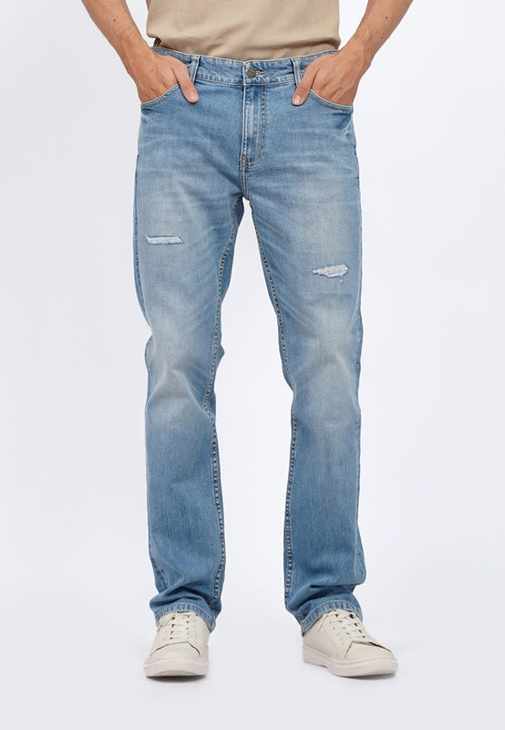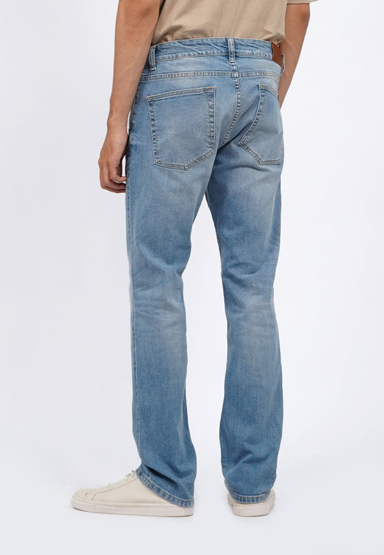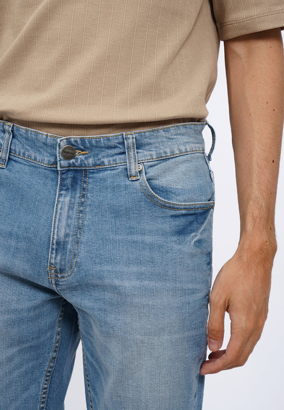 Celana jeans denim fitting slim tapered dengan washingan light blue, dengan effect whisker dan spray yang subtle hingga jeans terlihat worn in. Dilengkapi dengan destroy dengan patch pada bagian kanan lutut pemakai. Memiliki lima kantung. Ritsleting depan dengan kancing logam. Berbahan cotton elastan yang adem dan nyaman untuk beraktivitas, Material: 0, Fit: Slim, Color: Lt. Blue, Model info: Model Wearing Size 31, Height 183.5cm, Bust: 86 cm, Waist: 72, Hips: 82 cm