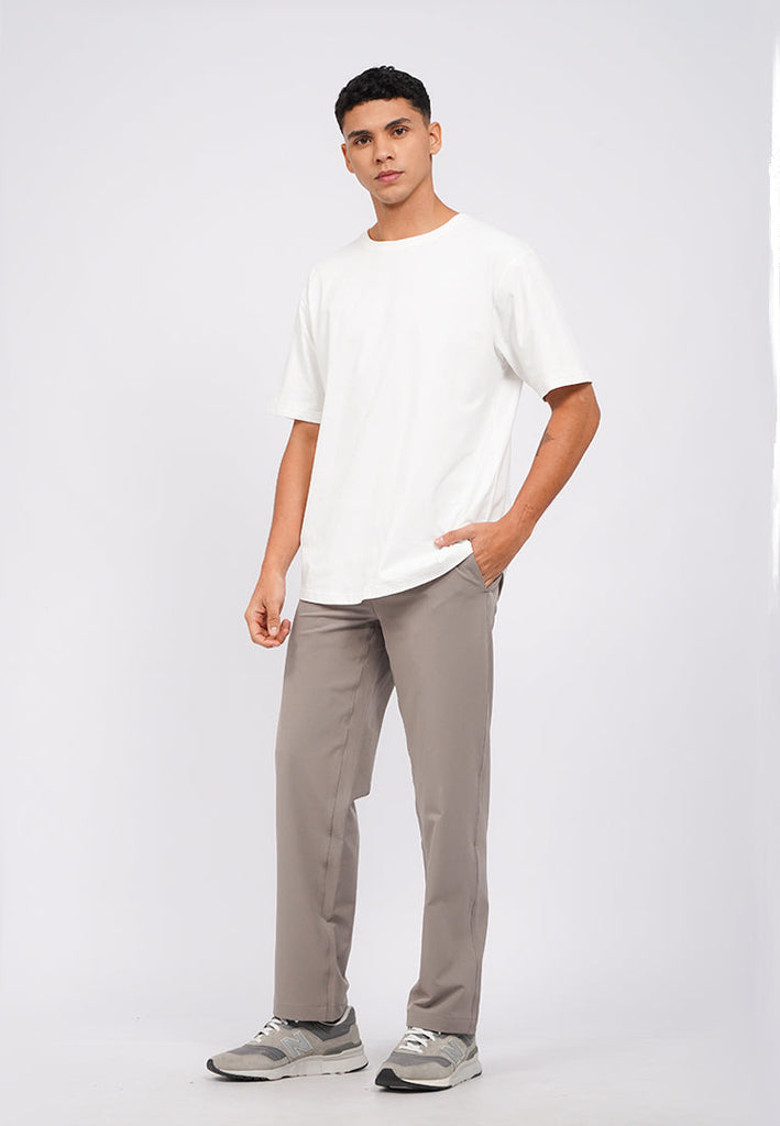 Celana panjang regular fit, Double back pocket, Inseam 29", 4-way stretch fabric, Front zipper with button opening, Material: Poly Spandex, Fit: Regular, Color: Taupe, Model info: Model Wearing Size 31_29, Height: 182, Chest: 94, Waist: 75, Hips: 96, Art: 1-LPRACT225J111