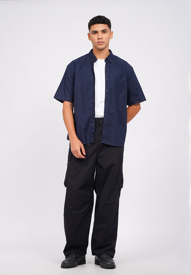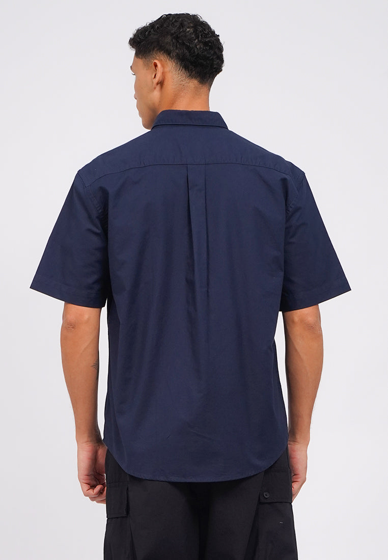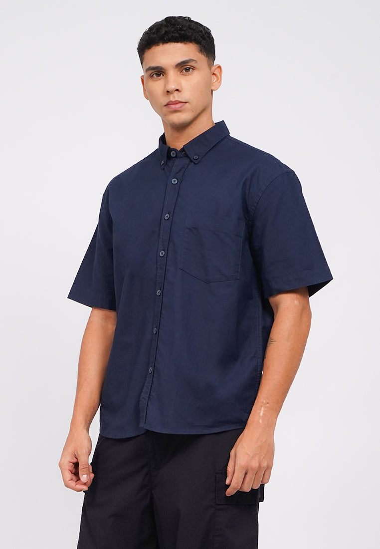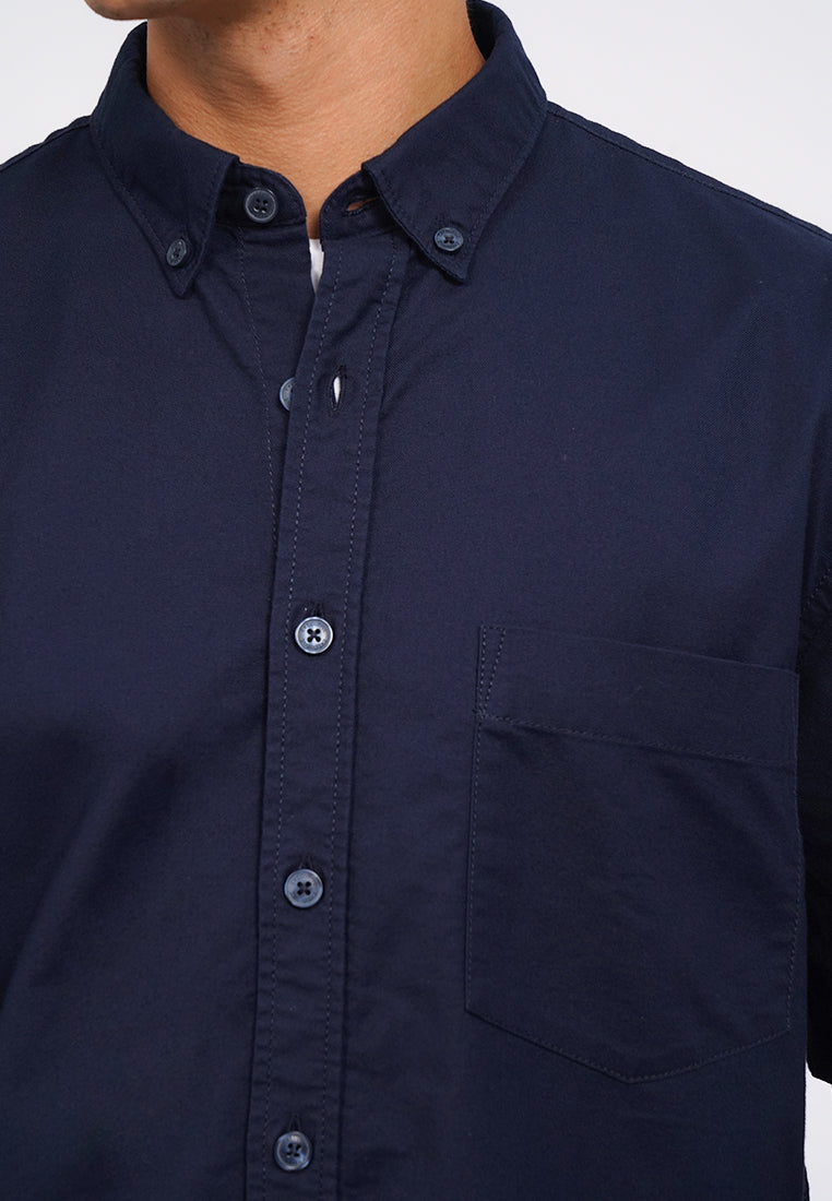Kemeja lengan pendek, Buttoned down collar, Pointed front pocket, Front button opening, Material: Cotton, Fit: Relaxed Fit, Color: Navy, Model info: Model Wearing Size 14,5, Height: 182, Chest: 94, Waist: 75, Hips: 96, Art: 1-SSXCRT225K164