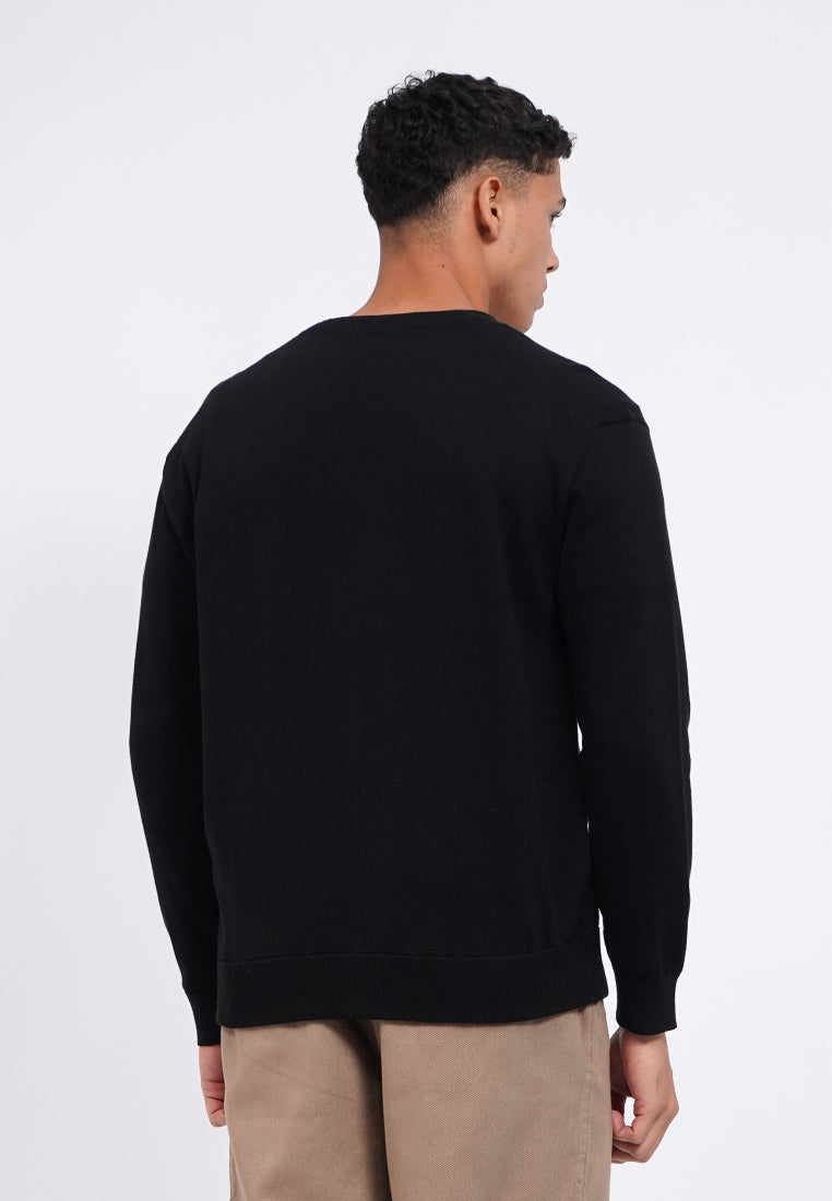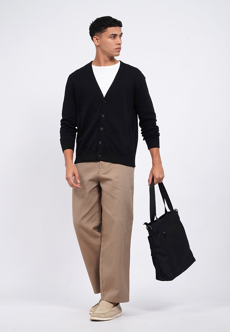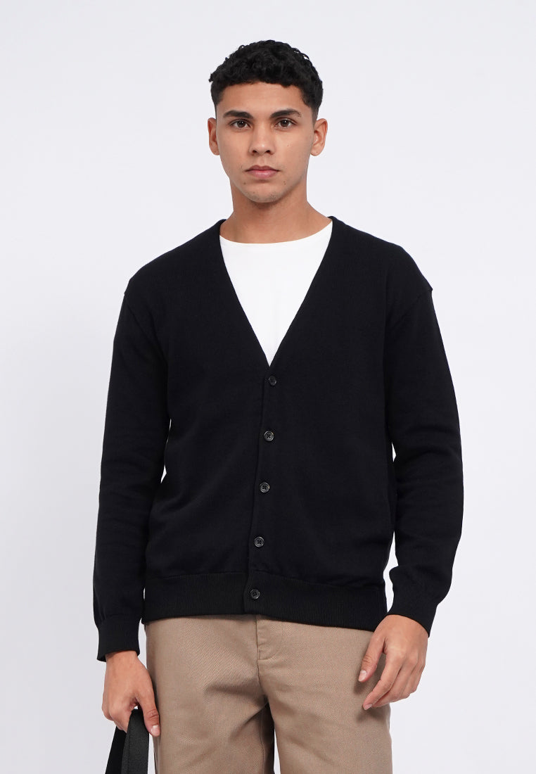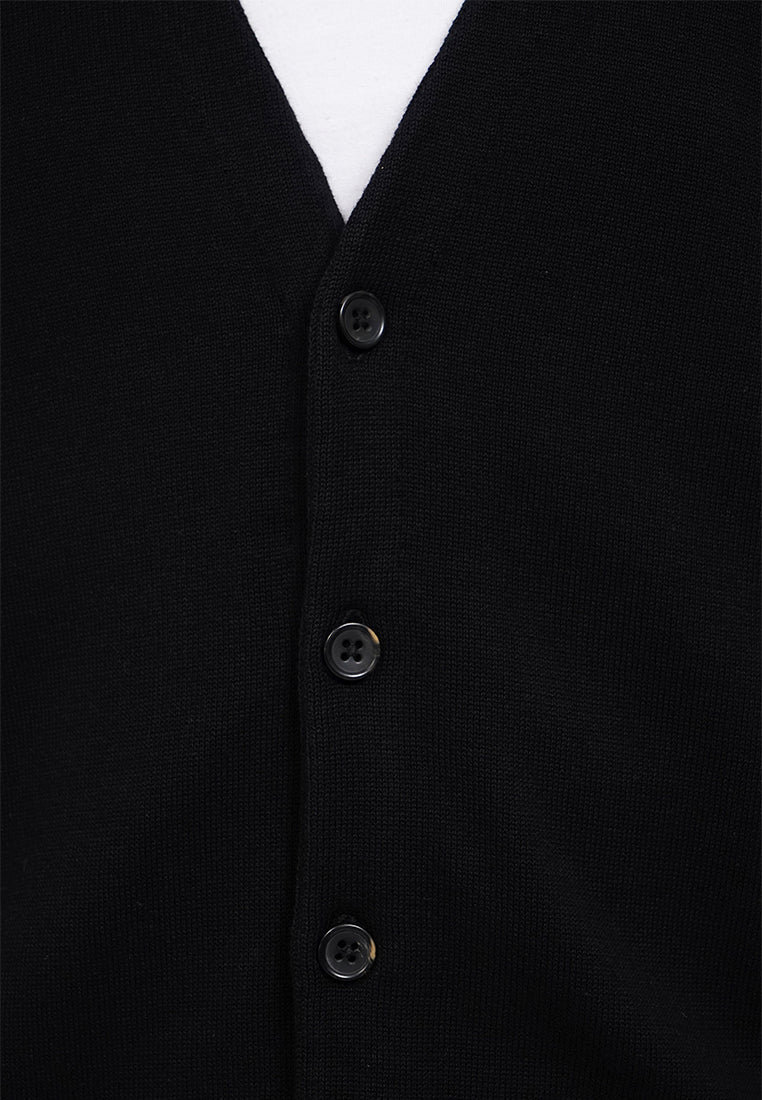 Atasan lengan panjang, V-neck, Front button opening, Knitted fabric, Material: Acrylic Knit, Fit: Slim, Color: Black, Model info: Model Wearing Size M, Height: 182 cm, Chest: 94 cm, Waist: 75 cm, Hips: 96 cm