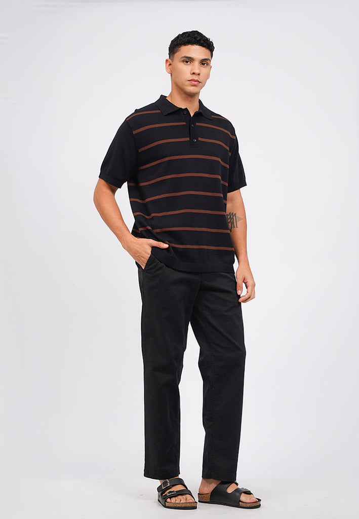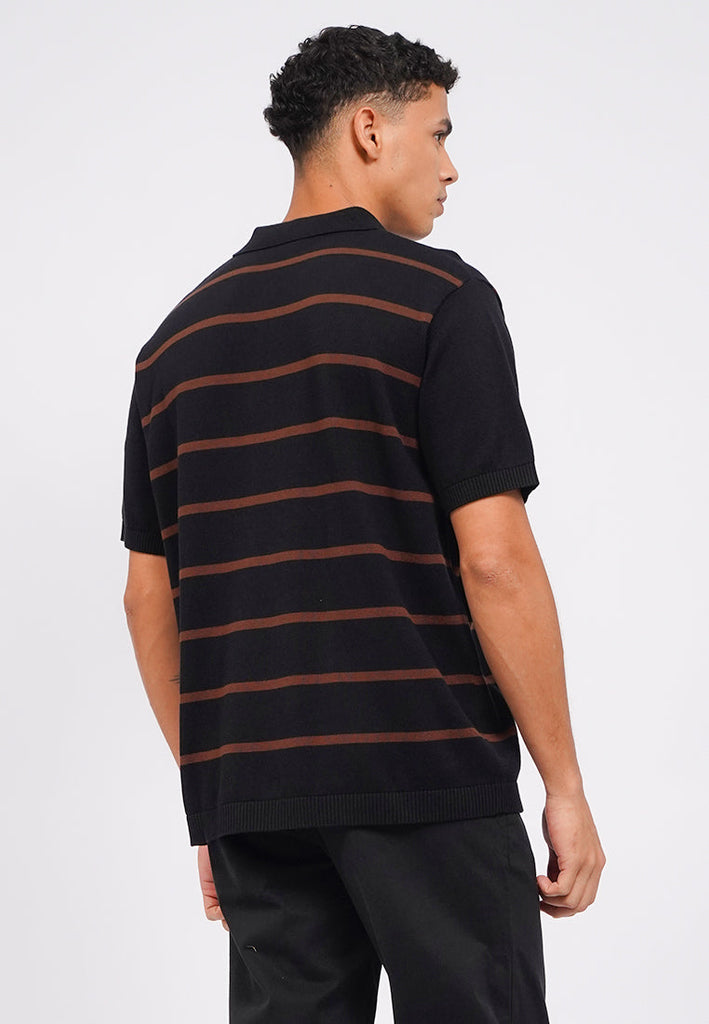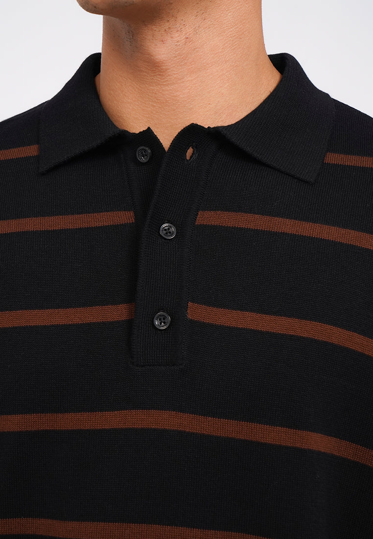 Polo shirt lengan pendek, Ribbed collar, Drop shoulder, Front button opening, Striped knit fabric, Material: Cotton, Fit: Regular, Color: Black, Model info: Model Wearing Size M, Height: 182, Chest: 94, Waist: 75, Hips: 96, Art: 1-PSRCRT225J188