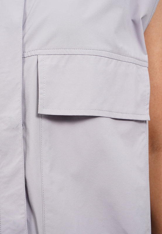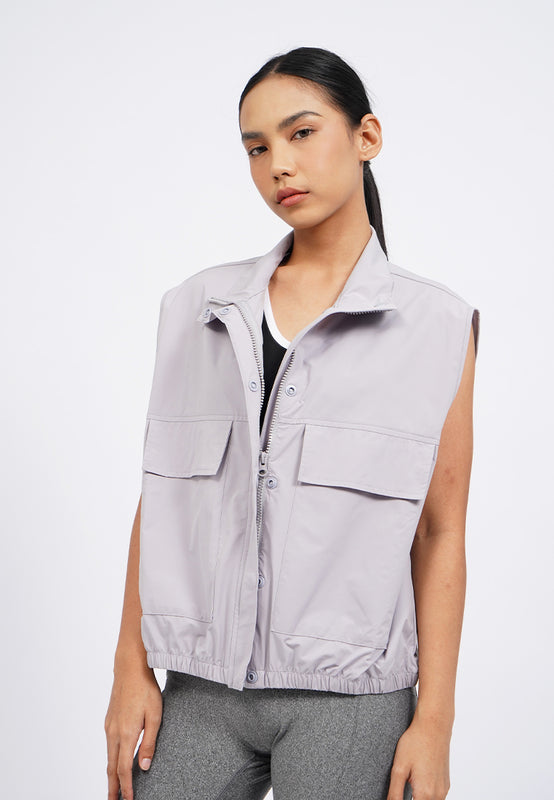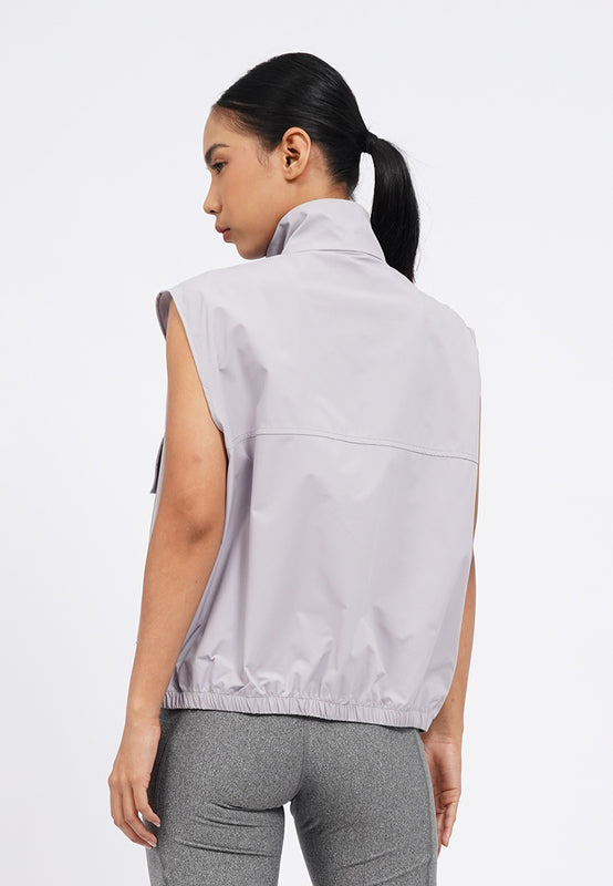 Oversized active vest, High neck, Double flap pocket, Front zipper opening, Material: Polyester, Fit: Oversized, Color: Grey, Model info: Model Wearing Size S, Height: 165 cm, Bust: 86 cm, Waist: 63 cm, Hips: 78 cm