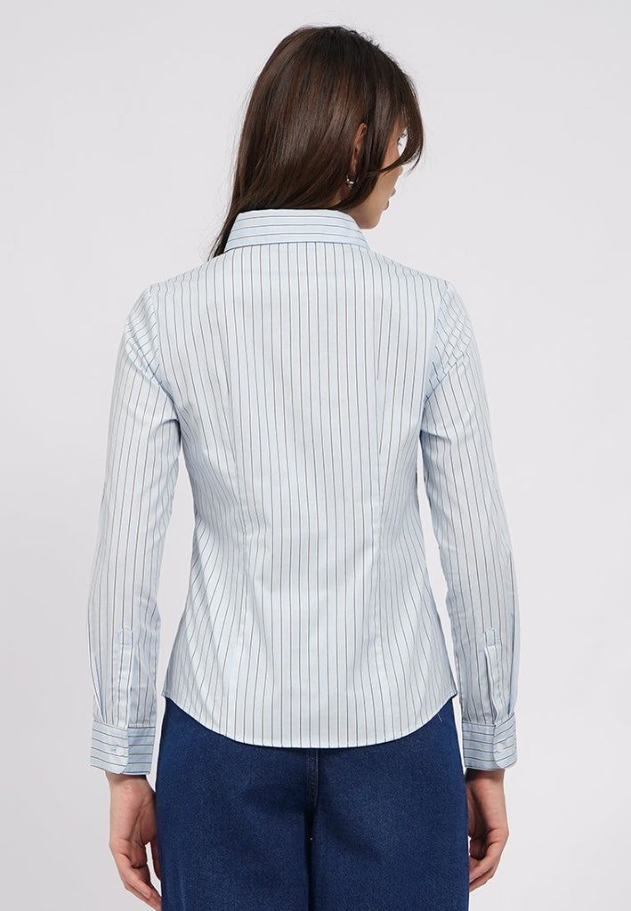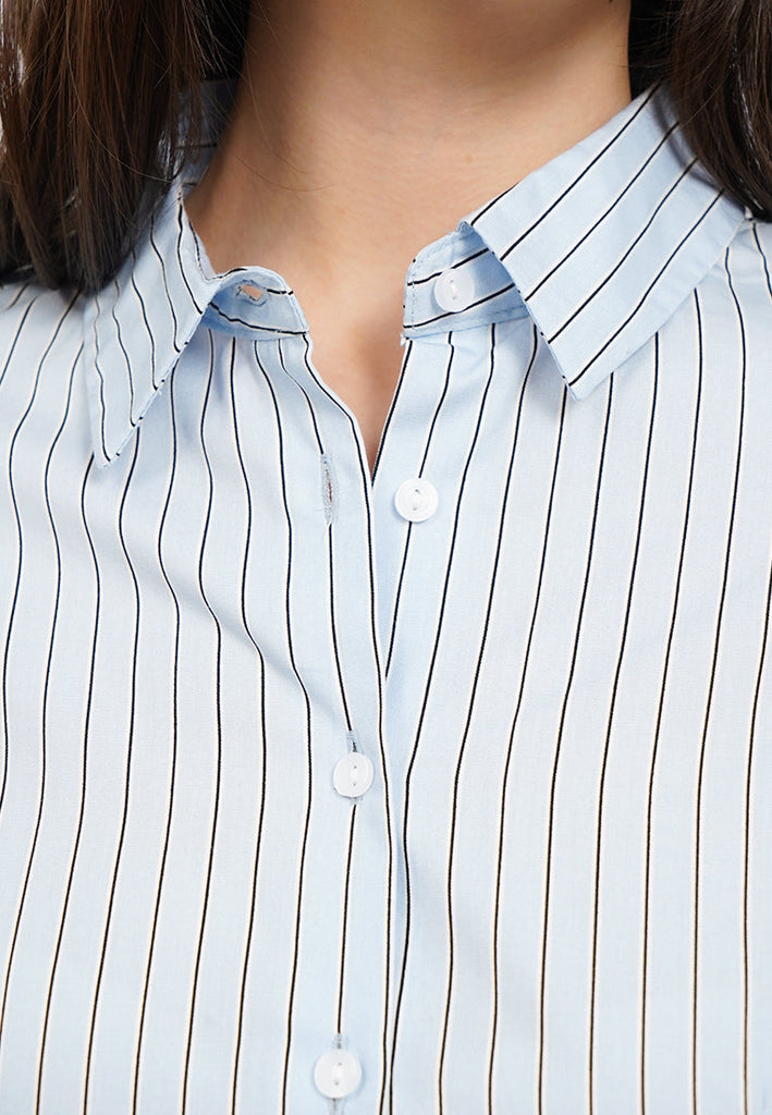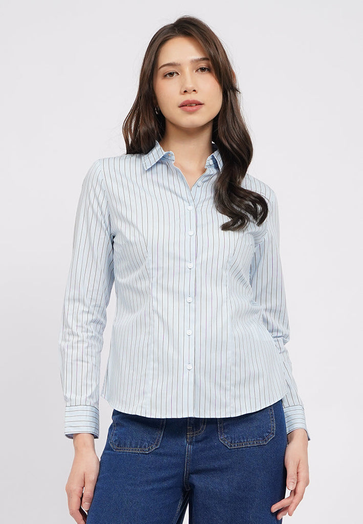 Blouse lengan panjang, Kerah kemeja, Slim cut, Stripes printed fabric, Rounded hemline, Material: Cotton, Fit: Slim, Color: Lt. Blue, Model info: Model Wearing Size S, Height: 175cm, Bust: 89, Waist: 69, Hips: 89, Art: 5-BLWKSG225J023