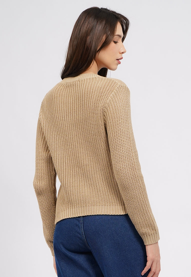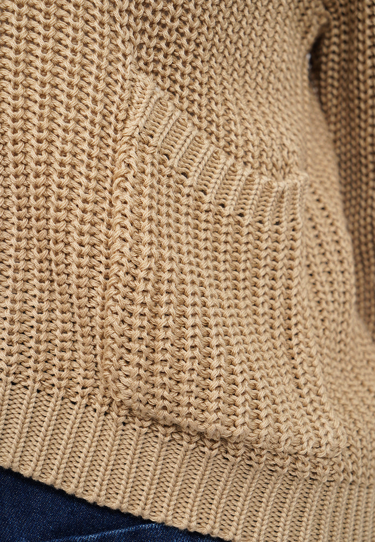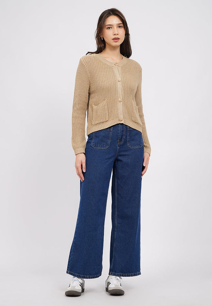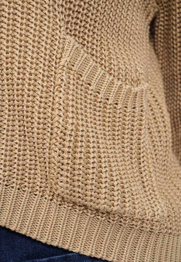 Cardigan lengan panjang, Round neck, Fancy button opening, Double front pocket, Textured fabric, Material: Cotton Acrylic, Fit: Regular, Color: Beige, Model info: Model Wearing Size S, Height: 175cm, Bust: 89, Waist: 69, Hips: 89, Art: 5-COGKSG225J052