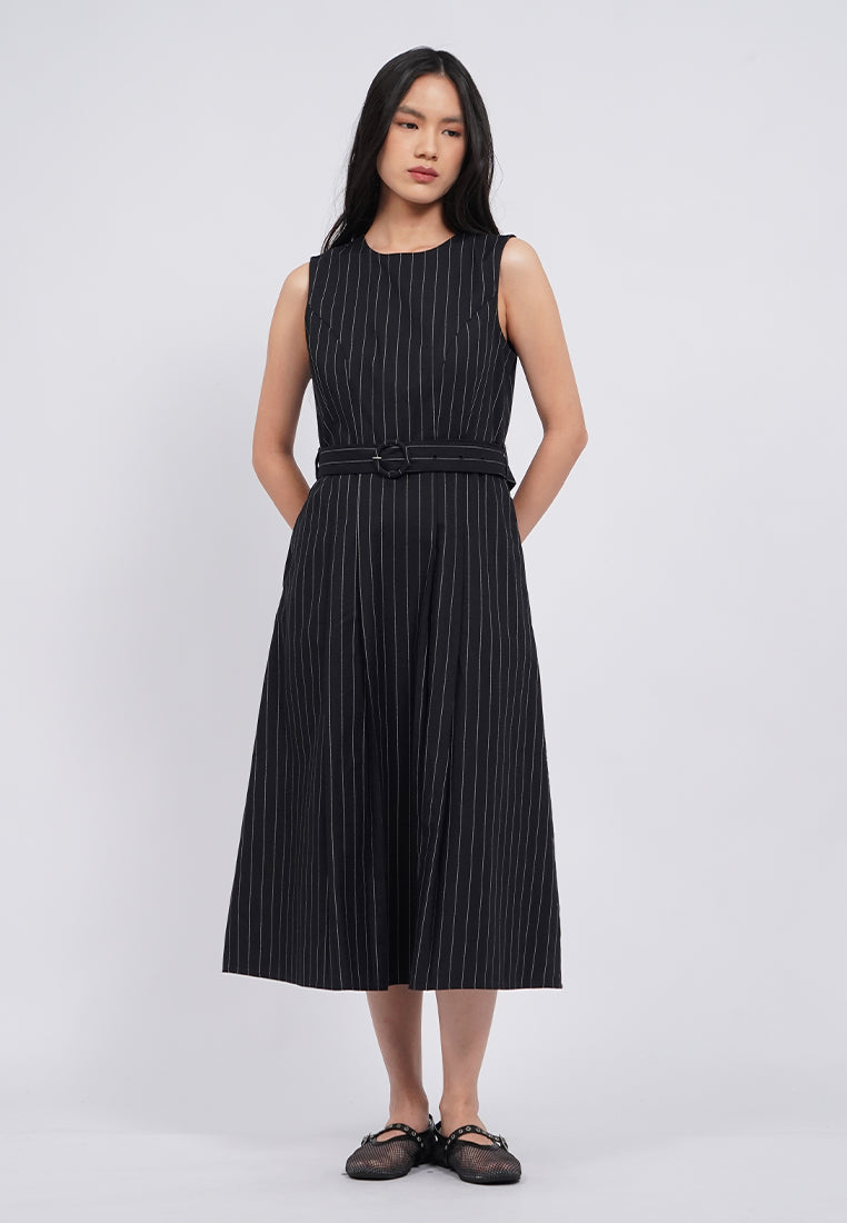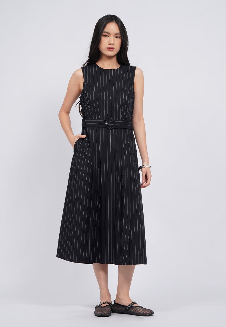 Sleeveless Belted Midi Dress