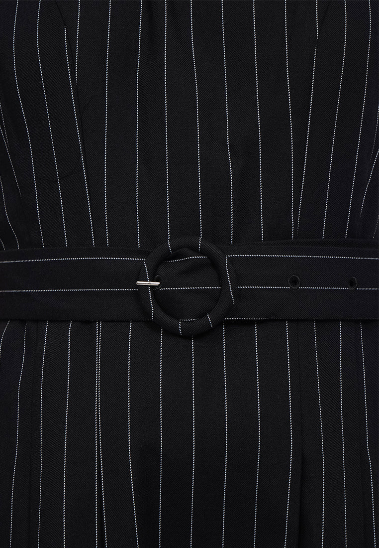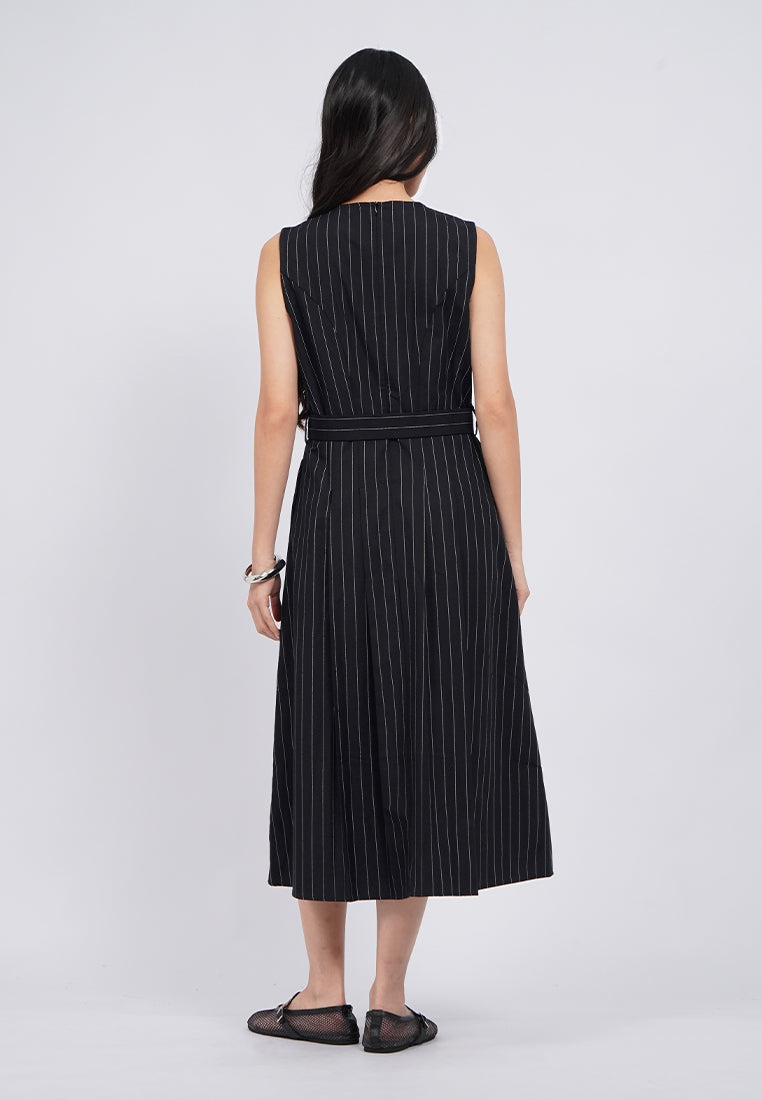 Midi dress tanpa lengan, Round neck, Adjustable belt attached, Side pocket details, Back zipper opening, Material: Cotton, Fit: Fit And Flare, Color: Black, Model info: Model Wearing Size S, Height: 168cm, Bust: 74cm, Waist: 62cm, Hips: 86cm