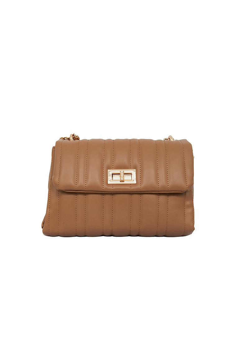 Shoulder bag kulit dua sekat yang dilengkapi kantung kecil dengan zipper di dalamnya, TxPxL : 14x20,5x5cm, Material: 50% Faux Leather, 50% Cotton, Color: Chocolate, Art: 5-HBPCFO122D013