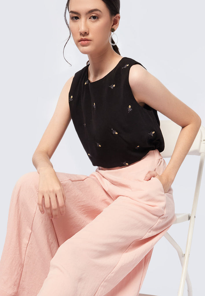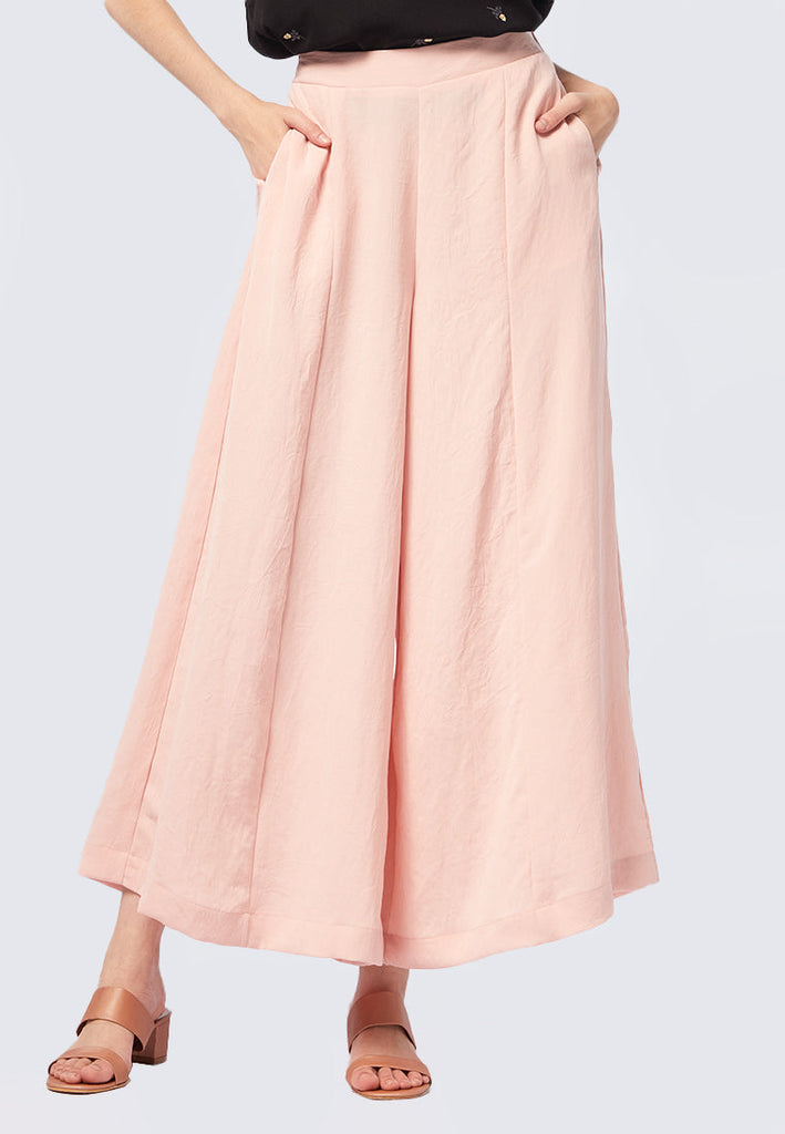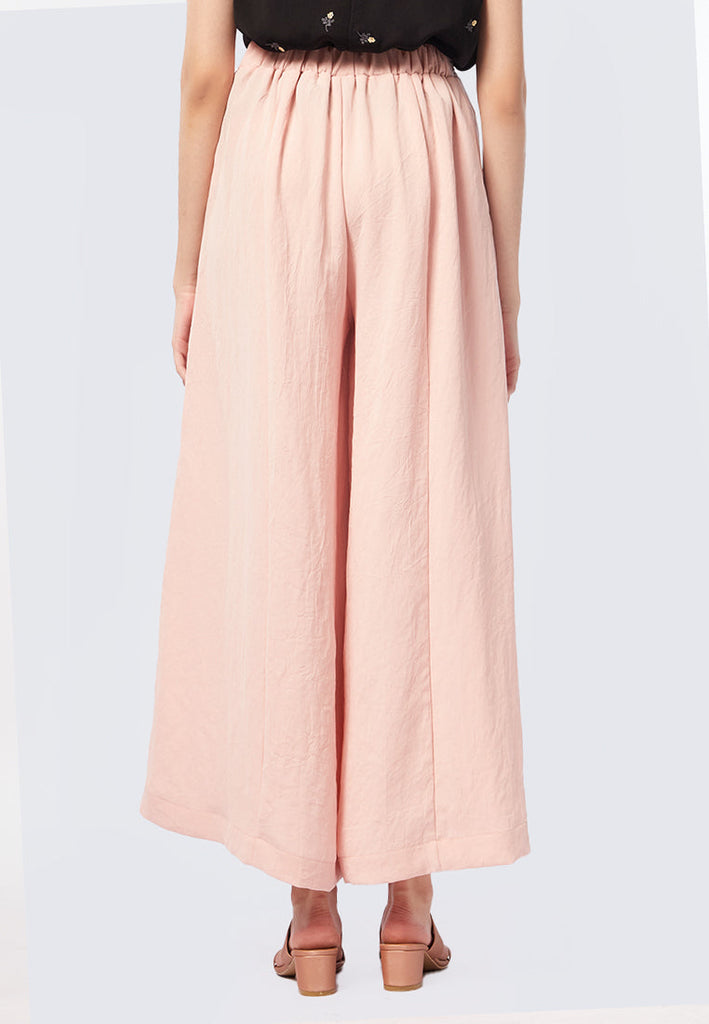 Celana panjang high waist, Flowy fabric, Dengan kantong samping, Elastic back waist, Material: Cotton, Fit: Regular, Color: Soft Pink, Model info: Model Wearing Size S for Top, Size 28 for Pants, Model Height 175 cm, Bust: 77 cm, Hips: 88 cm, Art: 5-LPWFEM222L008
