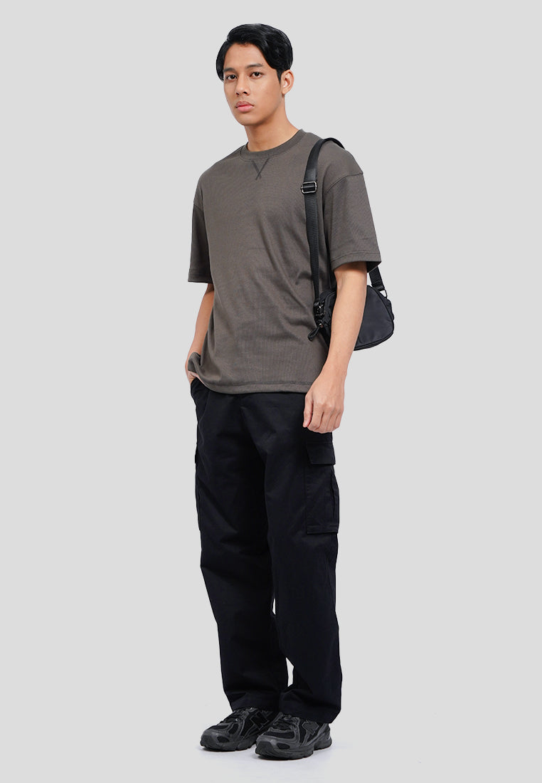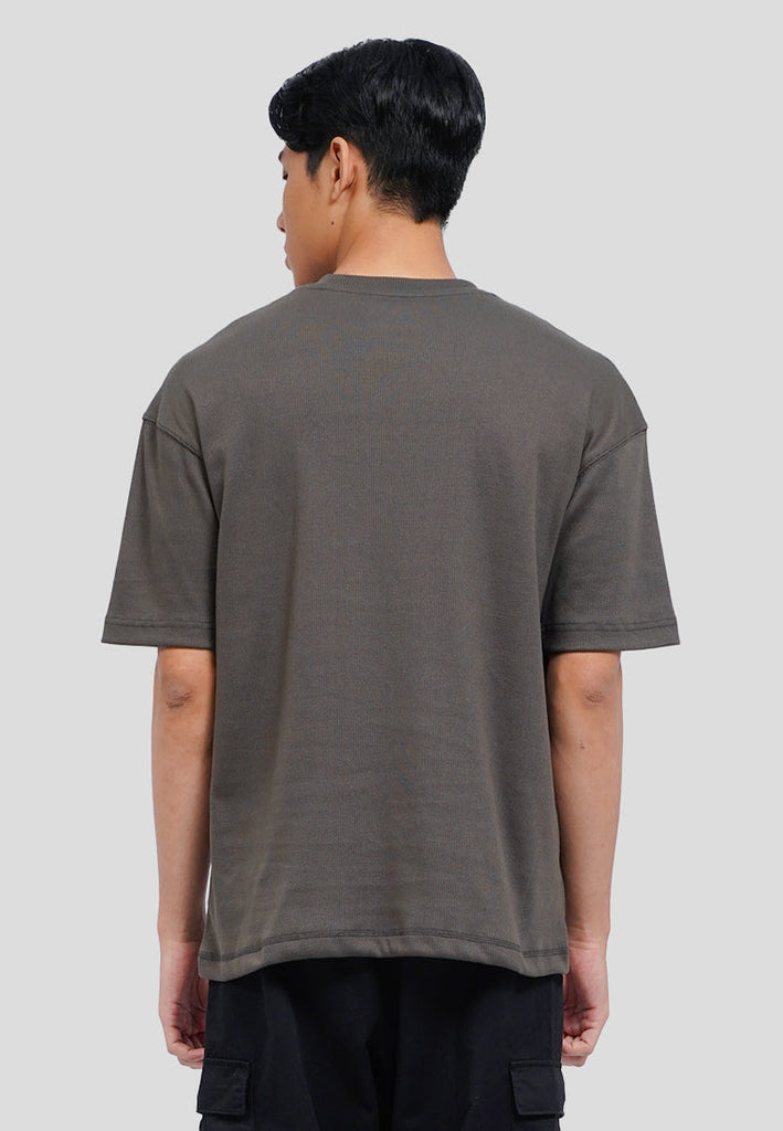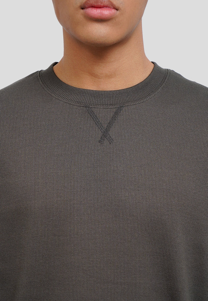 T-shirt lengan pendek, Round neck, Drop shoulder details, Textured fabric, Material: Cotton, Fit: Oversized, Color: Olive, Model info: HEIGHT: 180, BUST: 90, WAIST: 75, HIPS: 92, Art: 1-TSOCRT125F382