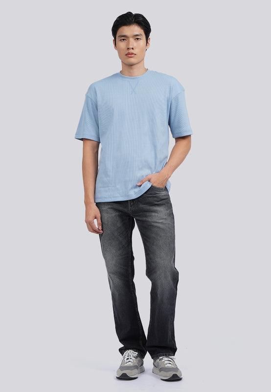Short sleeve active t-shirt, Round neck with stitch details, Drop off shoulder, Textured quick dry fabric, Material: Polyester, Fit: Oversized, Color: Ice Blue, Model info: HEIGT: 184CM, WAIST: 72CM, HIPS: 85CM, BUST: 92, Art: 1-TSOCRT125D377