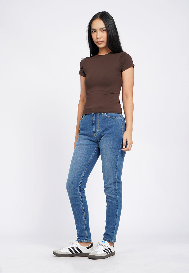 Celana jeans denim fitting skinny washing med blue worn in yang sublte dan modern.Memiliki lima kantung. Ritsleting depan dengan kancing logam. Berbahan cotton spandex yang nyaman saat dipakai, Material: 68% Cotton. 30% Polyester. 2% Spandex, Fit: Skinny Straight Ankle, Color: Med Blue, Model info: HEIGHT: 176, BUST: 82, WAIST: 62, HIPS: 69, Art: 7-LLDNKEY125D050