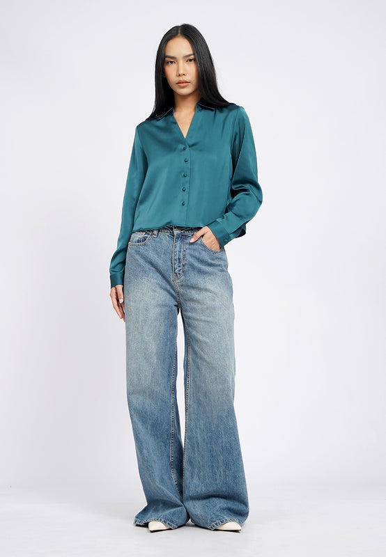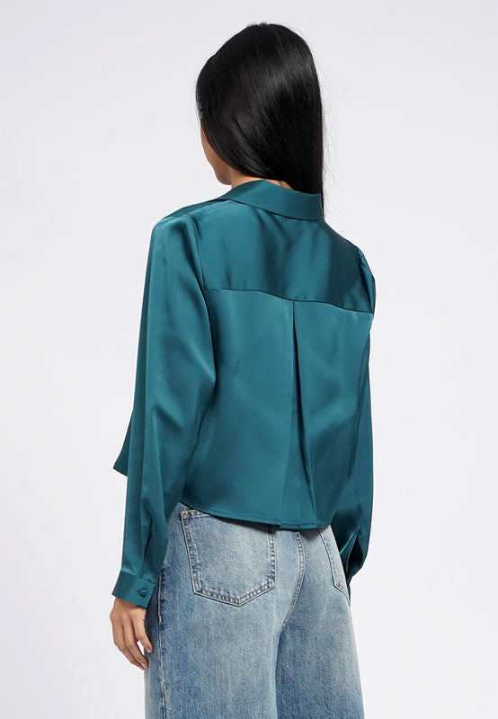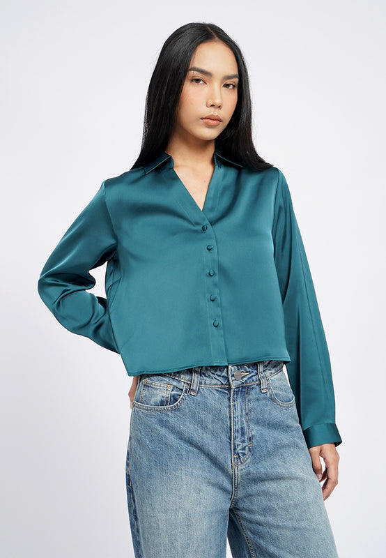 Long Sleeve Crop Satin Shirt