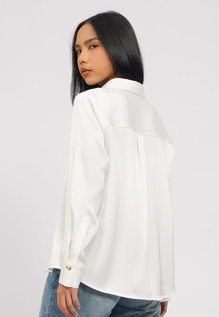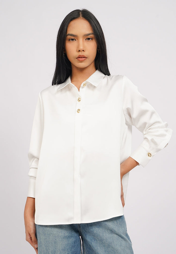 Long Sleeve Satin Shirt with Fancy Button