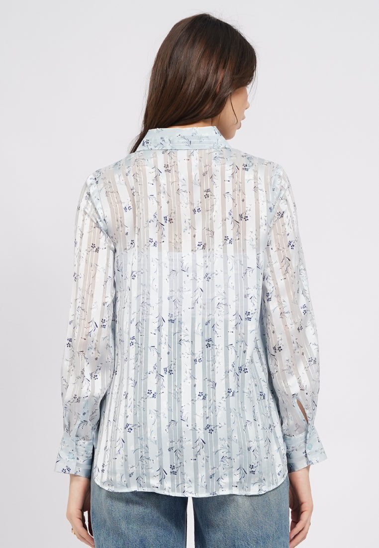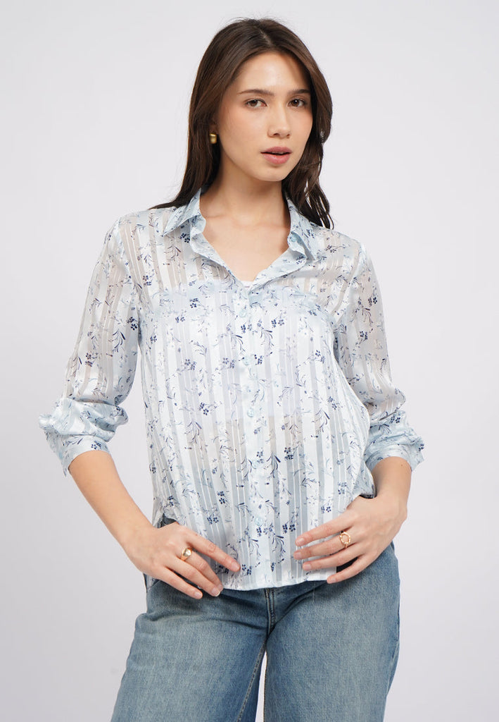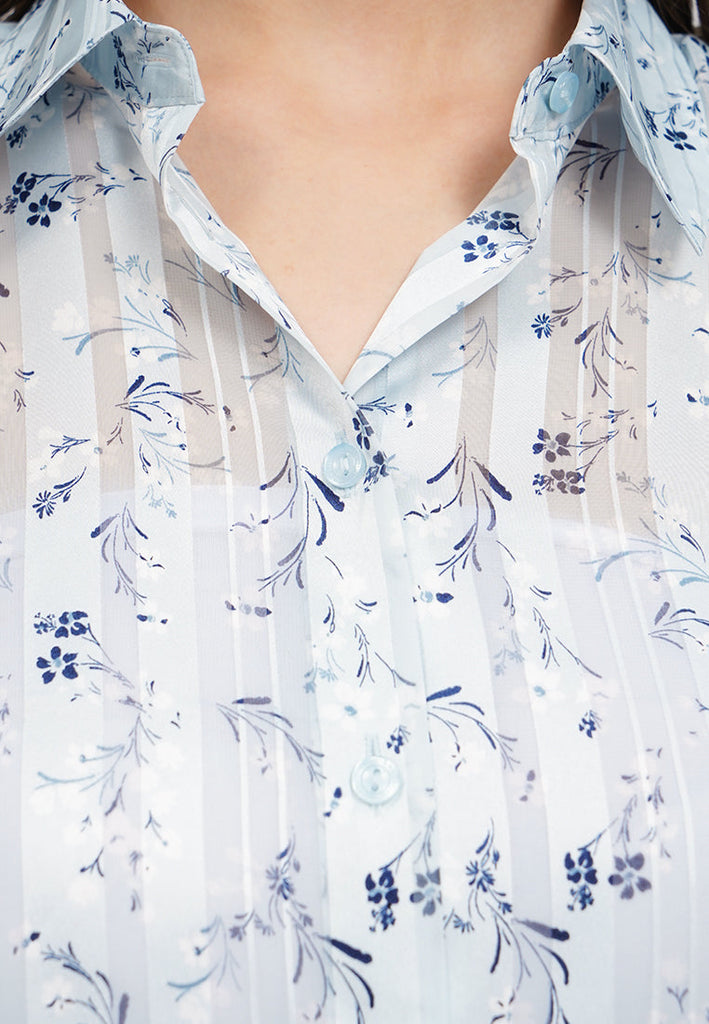 Blouse lengan panjang, Kerah kemeja, Printed sheer fabric, Front button opening, Material: Polyester, Fit: Regular, Color: Lt. Blue, Model info: Model Wearing Size S, Height: 175cm, Bust: 89, Waist: 69, Hips: 89, Art: 5-BLWKSG225K057