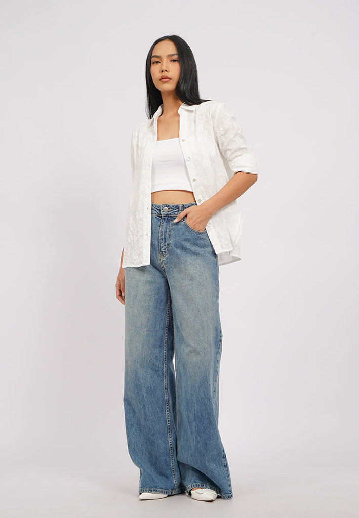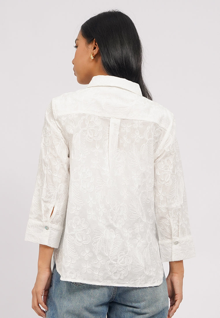 V-Neck Long Sleeves Eyelet Blouse