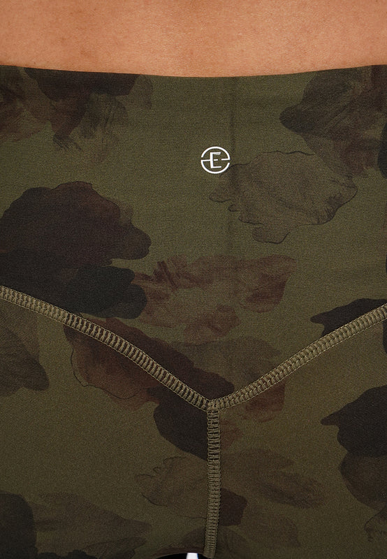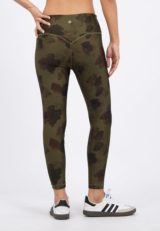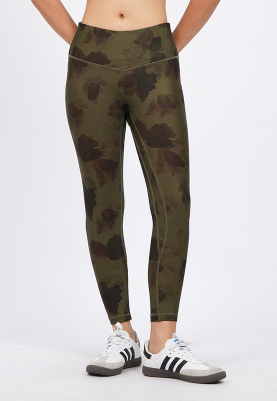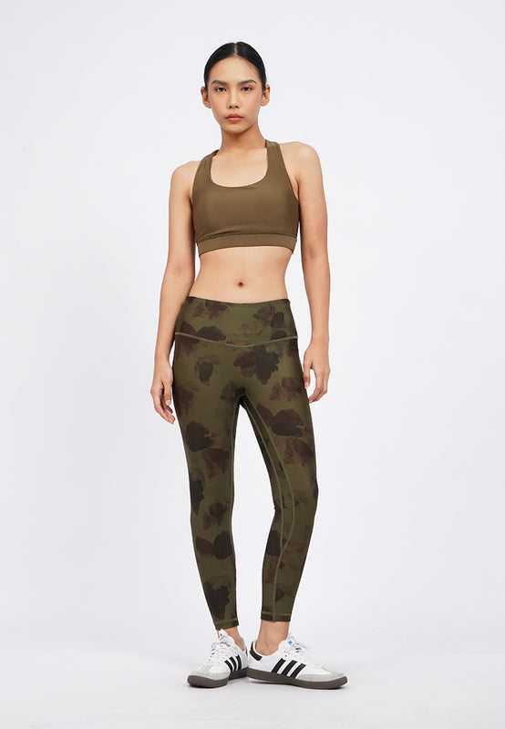 Ankle length sports legging, Mid waist, Printed quick dry fabric, Back logo details, Material: Poly Spandex, Fit: Fitted Crop, Color: Olive, Model info: Model Wearing Size S, Height: 165 cm, Bust: 86 cm, Waist: 63 cm, Hips: 78 cm