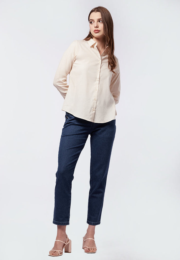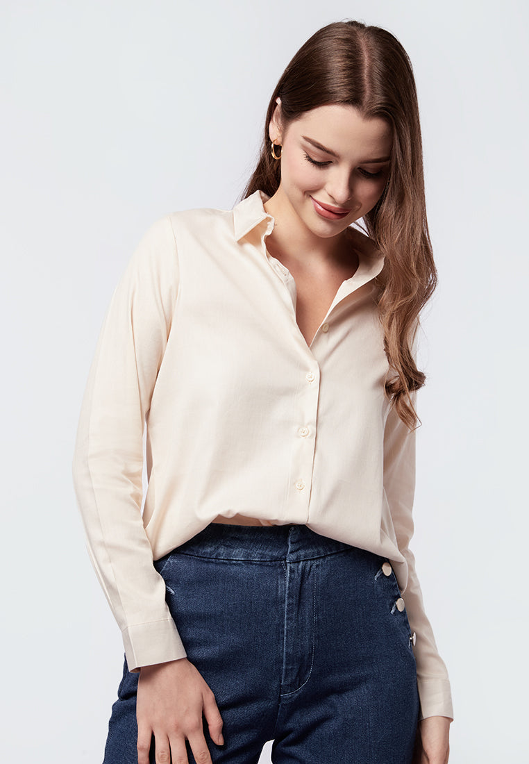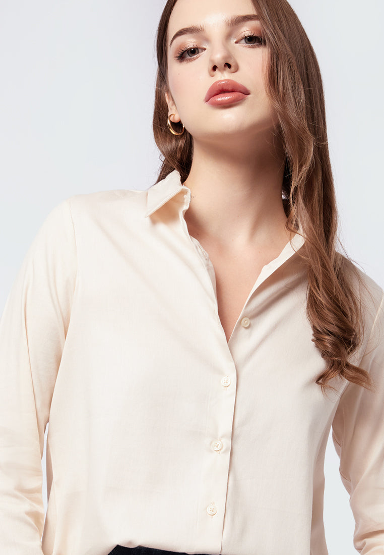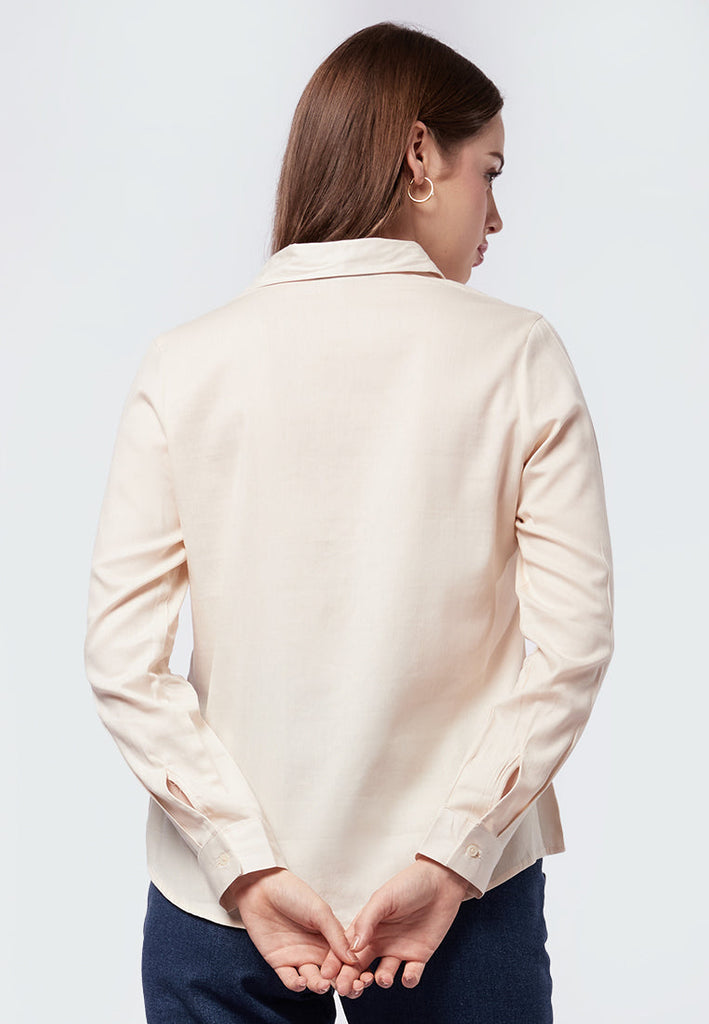 Blouse lengan panjang, Kerah kemeja, Front button opening, Rounded hemline, Material: Cotton Rayon Twill, Fit: Regular, Color: Beige, Model info: Model Wearing Size S for Top, Size S for Pants, Model Height 174 cm, Bust: 82 cm, Waist: 60, Hips: 90 cm, Art: 5-BLWKCA222L106
