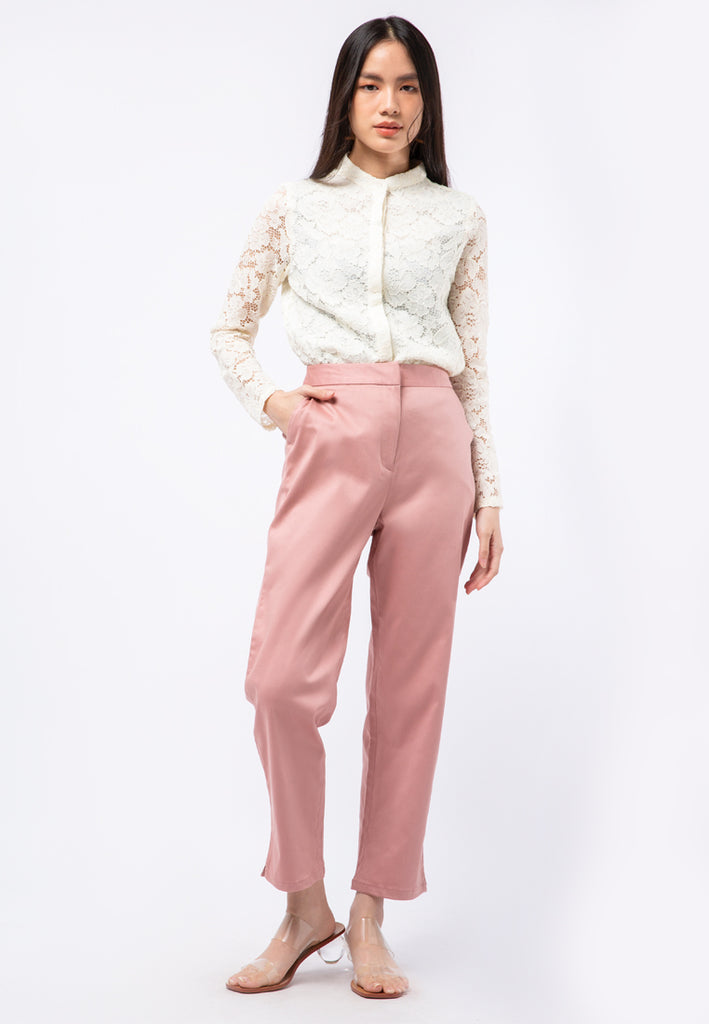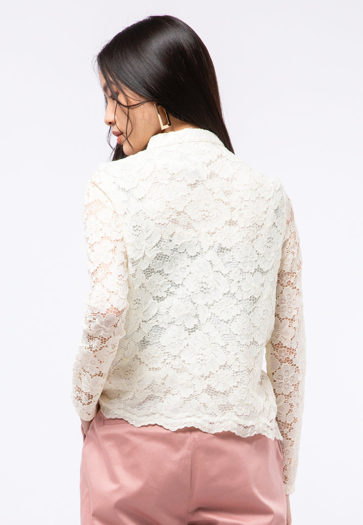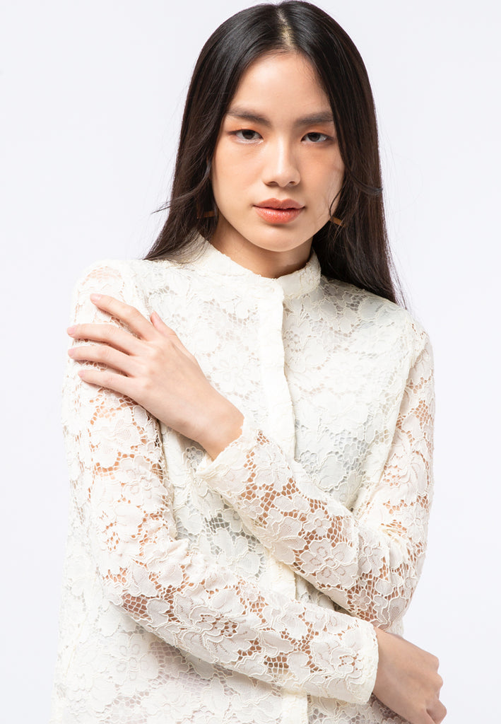 Blouse lengan panjang, High neck, Lace fabric, Front button opening, Material: Cotton Polyester, FIT: REGULAR, Color: OFF WHITE, Model info: , Art: 5-BLESIG221J007