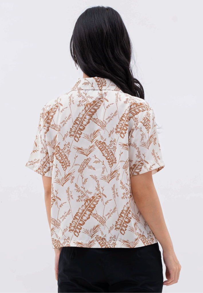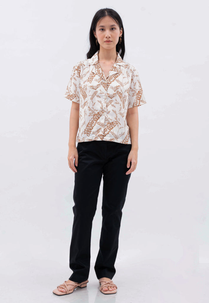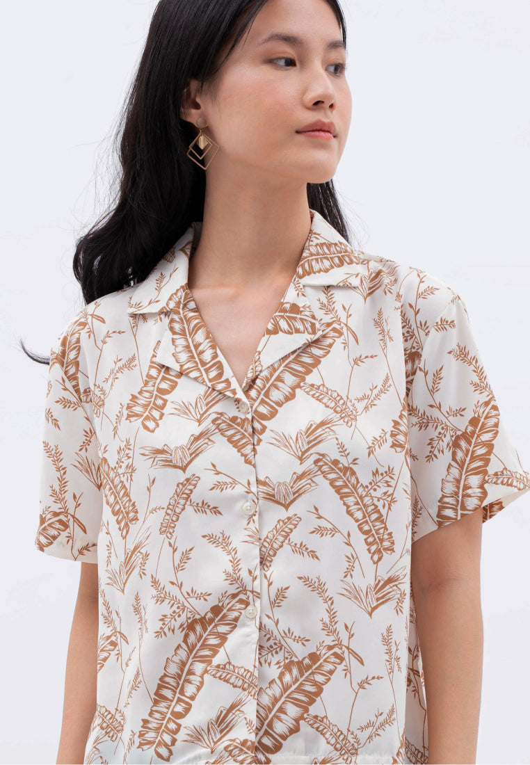 Blouse lengan pendek, Pyjama collar, Printed fabric, Front button opening, Material: Cotton, FIT: REGULAR, Color: TAUPE, Model info: Model Wearing Size S For Tops, Model Height 168 cm, Bust: 80cm, Waist: 62cm, Hips: 87cm, Art: 5-BSWKSG122D138