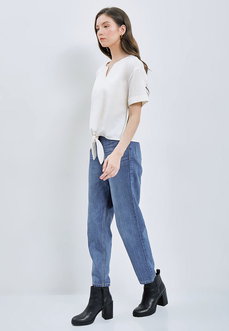 Short Sleeve Blouse with Front Knot