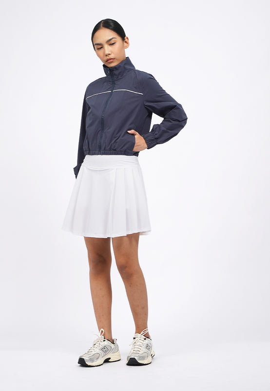 Active jacket, High neck, Full zip opening, Contrast lining details, Side pocket details, Material: Polyester, Fit: Regular, Color: Navy, Model info: Model Wearing Size S for Top, Size S for Pants, Model Height 165 cm, Bust: 86 cm, Waist: 63 cm, Hips: 78 cm