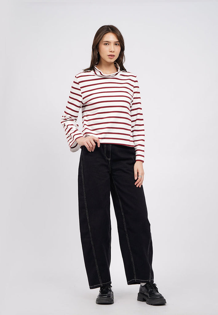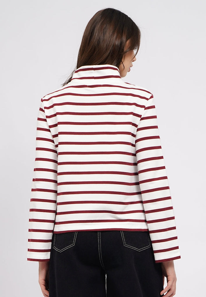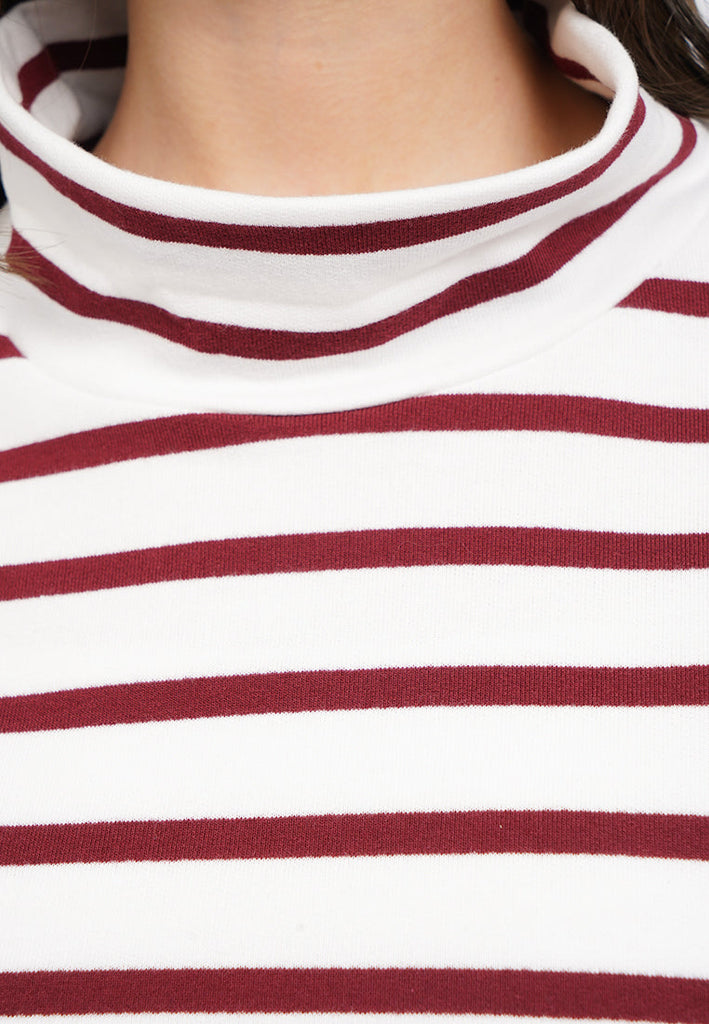 Atasan lengan panjang, High neck, Loose cut, Stripes printed fabric, Material: Baby Terry, Fit: Regular, Color: Berry, Model info: Model Wearing Size S, Height: 175cm, Bust: 89, Waist: 69, Hips: 89, Art: 5-TLKCAS225J002