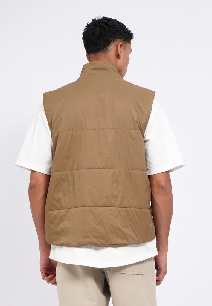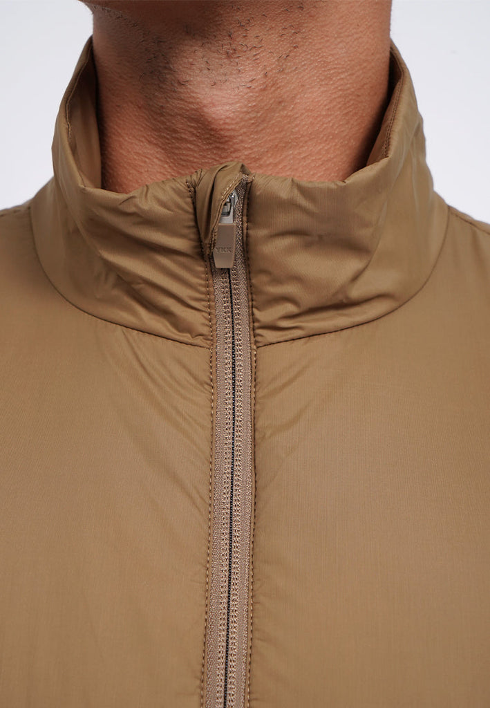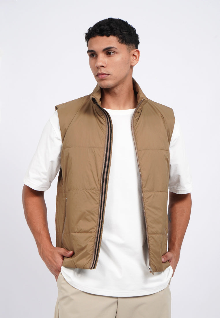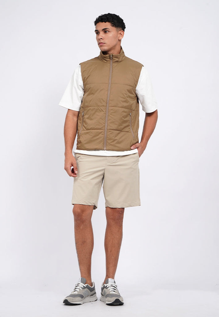 Quilted active vest, High neck, Full zipper opening, Double side pocket, Material: Poly Spandex, Fit: Slim, Color: Taupe, Model info: Model Wearing Size M, Height: 182 cm, Chest: 94 cm, Waist: 75 cm, Hips: 96 cm