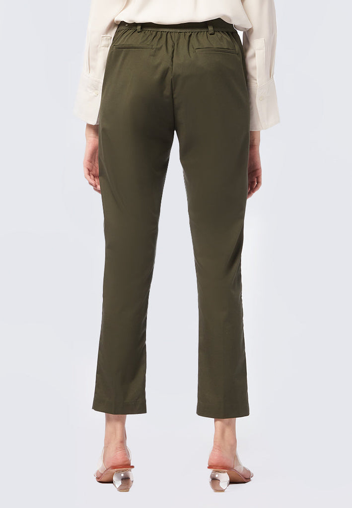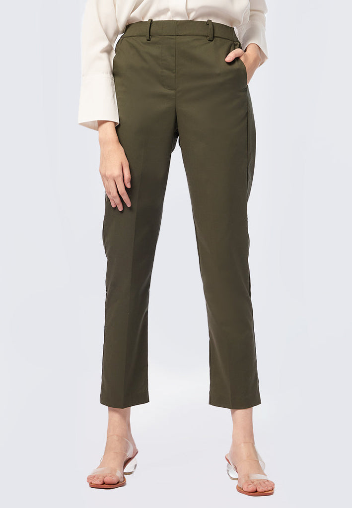 Boston editor pants, Tapered fit, High waist, Dengan kantong samping dan belakang, Elastic back waist, Material: Cotton, Fit: Slim, Color: Navy, Model info: Model Wearing Size S for Top, Size 28 for Pants, Model Height 175 cm, Bust: 77 cm, Hips: 88 cm, Art: 5-LPWBSC509O434