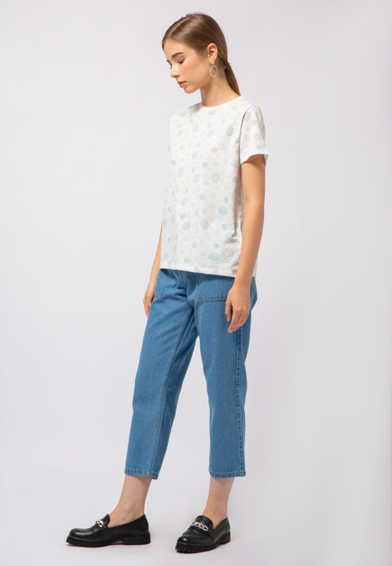 T-shirt lengan pendek, Kerah bulat,Full print details, Regular length, Material: Cotton Combed, FIT: REGULAR, Color: OFF WHITE, Model info: Model Wearing Size S for Top, Model Height 170 cm, Bust: 75 cm, Waist: 60 cm, Hips: 87 cm, Art: 5-TSKKCA122D116