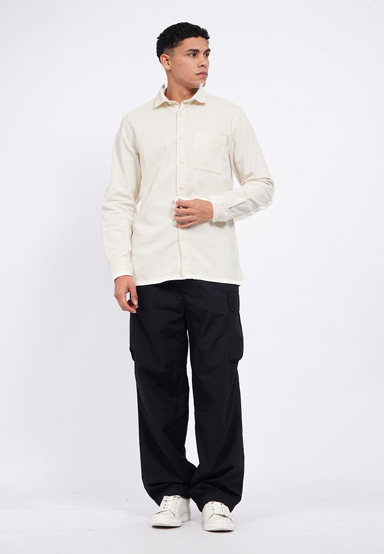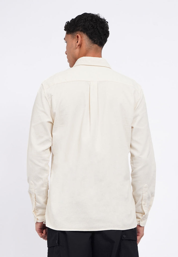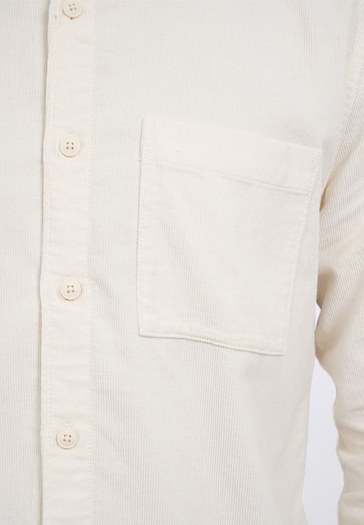 Kemeja lengan panjang, Square front pocket, Front button opening, Corduroy textured fabric, Material: Cotton, Fit: Regular, Color: Ecru, Model info: Model Wearing Size 15.5, Height: 182 cm, Chest: 94 cm, Waist: 75 cm, Hips: 96 cm