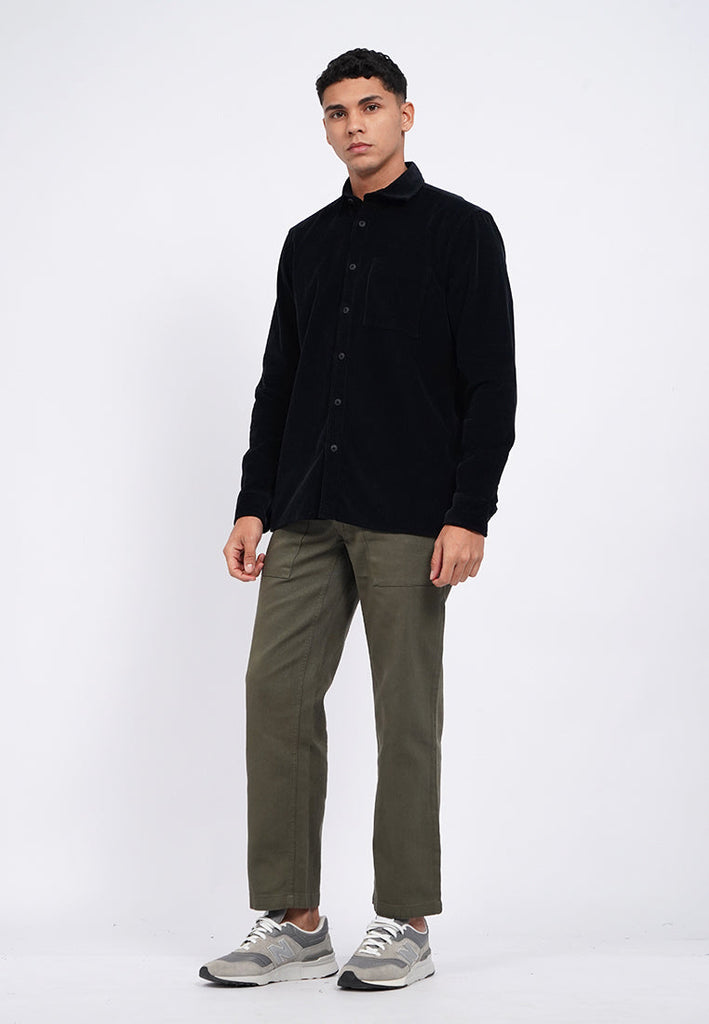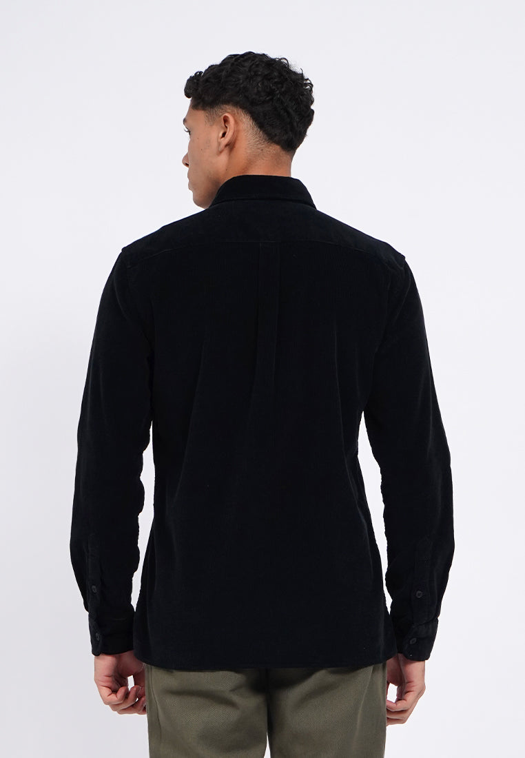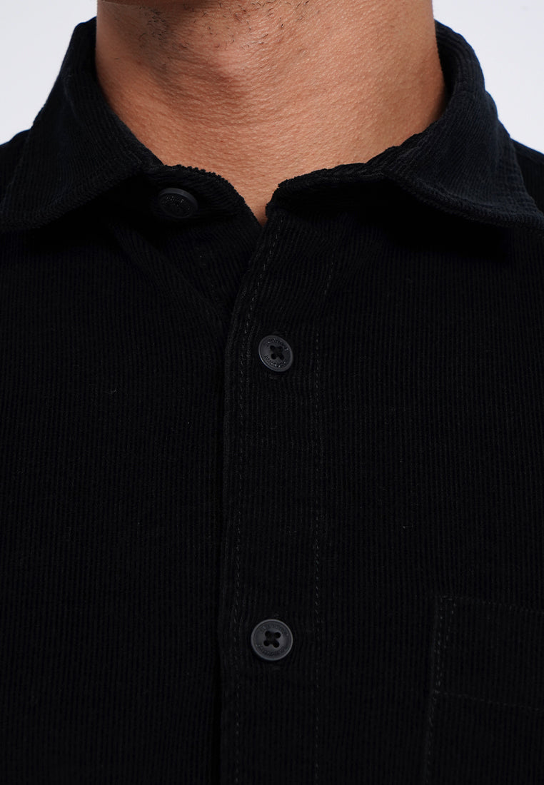 Kemeja lengan panjang, Square front pocket, Front button opening, Corduroy textured fabric, Material: Cotton, Fit: Regular, Color: Black, Model info: Model Wearing Size 15.5, Height: 182 cm, Chest: 94 cm, Waist: 75 cm, Hips: 96 cm