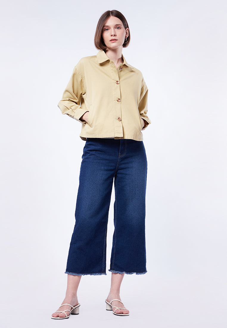 Jaket lengan panjang, Kerah kemeja, Drop shoulder details, Dilengkapi kantong samping, Material: Twill, Fit: Regular Fit, Color: Olive, Model info: Model Wearing Size S for Top, Size 31 for Pants, Model Height 175 cm, Bust: 84 cm, Waist: 60 cm, Hips: 88 cm, Art: 5-JKWKCA122G059